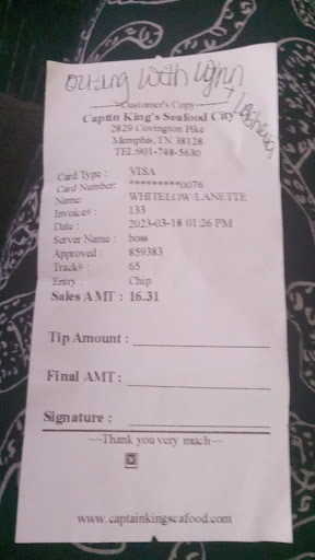 Read moreOut of all the buffet places in Memphis, TN this one had by far the best kid friendly environment. Not only did they have children running through the restaurant they also weren’t efficient enough in seating customers. Furthermore, customers would accumulate in the isles making for an unnecessary crowd. The waitress customer service was good which is why three stars instead of one was given. However, my experience at Captain King’s Seafood City was again disturbed by the fact that it took longer than 10 minutes to get my seafood broil which was guaranteed only a five minute wait. Additionally, buffets aren’t usually that clean to begin with; however, I pulled out my chair to find that there was still food in it. This highly disappointed me along with the fact that the outside of the chair was also not as clean as should be. If you want a three star renovated buffet then this is your restaurant, if not then I would seek a more cleaner, more controlled, and more attentive...