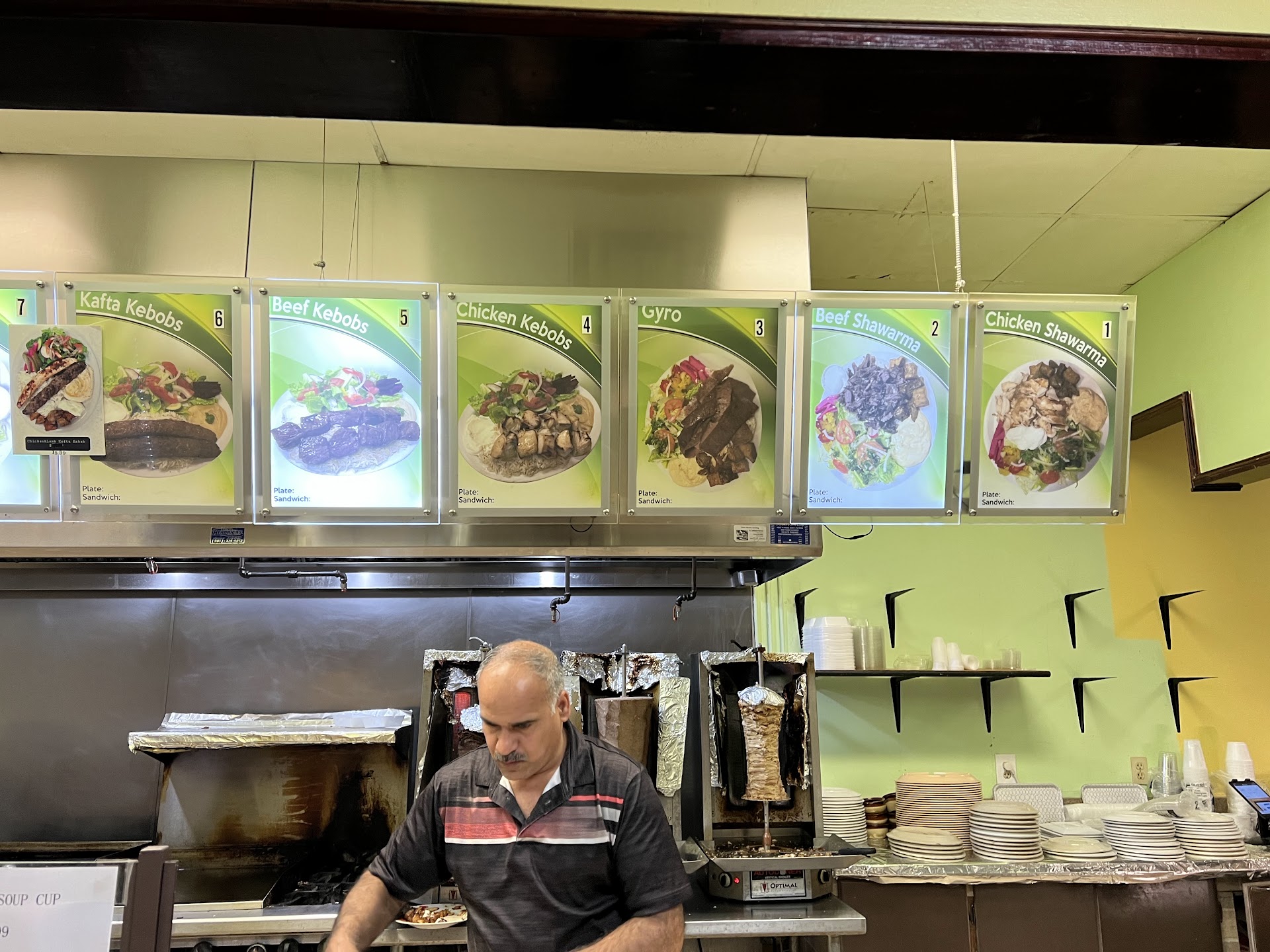 Read moreWe found this place on Navigator, as it close by a play. We liked the menu and went for dinner. To repeat, we had scouted the menu but knew nothing else. It was a surprise to find ourselves ordering at the counter with nothing to go by but large pictures of food and names of the dish (no listing if what is included and no prices!) it was awkward and would be very hard during busy times, as you have to walk the length of the counter to see the options, and notice that there are “side” dishes literally on the side of the room. All drinks, including water, come from a side cooler box (No, yiu can’t order tap water and not pay for it. You have to buy a bottle ) We ordered, noting that nothing was written down, nor did they charge us. They told us to sit down and wait and it was not a long wait. The plates were piled high and most of the food was tasty (with the exception of the vegetarian plate, which was greasy and largely undefined food). Lentil soup was a highlight. Pita bread was “meh.” The spinach pie was mostly a hollow shell with a little boiled spinach inside (if you expected spanakopita, as I did, you were disappointed). Then the reckoning at the cash register, where our party of four each “told what they got” and were given a final price, so if you have multiple items, you still don’t know the price. Two plates (including the meh veg) plus soup ran $40 and change. That’s near 2X what I would have considered a fair price. I now understand why they have you eat before charging you. We...