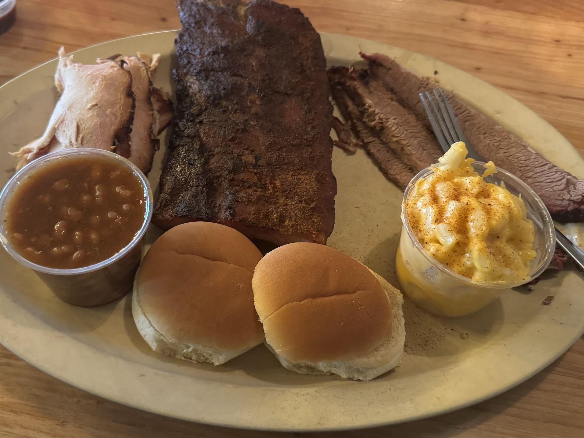 Let me say that I LOVE barbecue. I was eager to try this place. When we got in we had to order and then seat ourselves, which was fine with me. The cashier was not very helpful and not too pleasant.