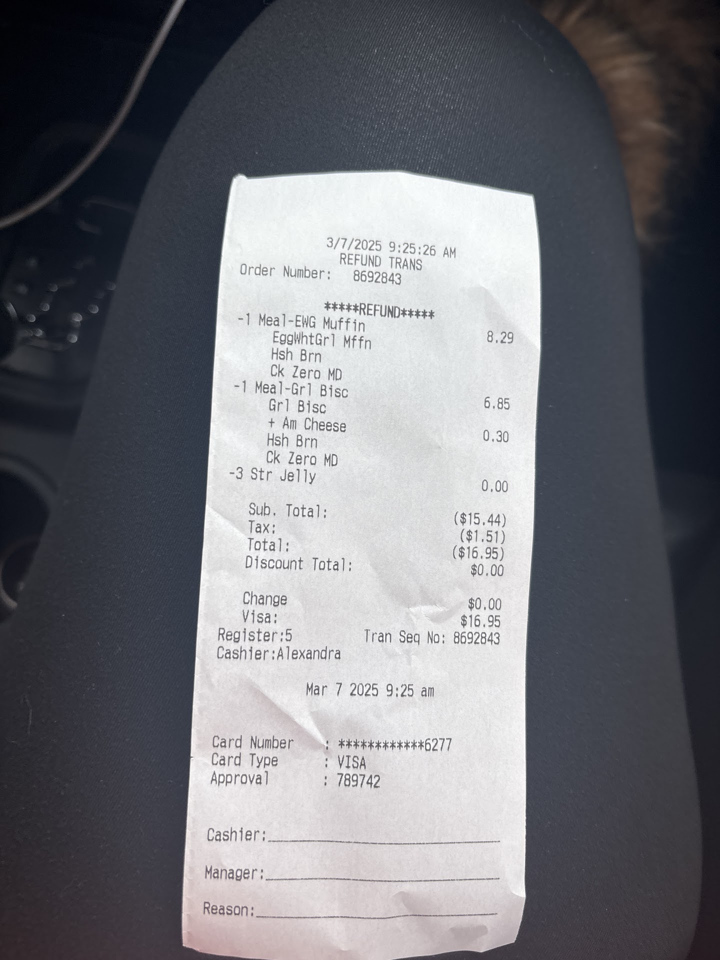 Read moreUpdate, since January 2020 Come on you guys. This is not like you. Last time I visited I couldn't use my complimentary card for a sandwich because it was expired. And somehow the young lady charged me anyway after I said that I didn't want it. Then I had to go inside for a refund, which they only wanted to put on my card, instead of cash(cash is how I paid originally). Also the next time that I came with a complimentary card. The young lady told me that I couldn't use the card and then pay the difference(which I different) ,etc,etc. Tonight I ordered the grilled chicken (#5) with pepper jack cheese and a sprite no ice. I ended up having to drive back(thankfully I wasn't far) to get another drink because it tasted like alka-Seltzer. However, once I made it around the corner to eat, I noticed that my cheese wasn't melted and my chicken sandwich was COLD. I ate it any way because I was hungry... subtracting another star.