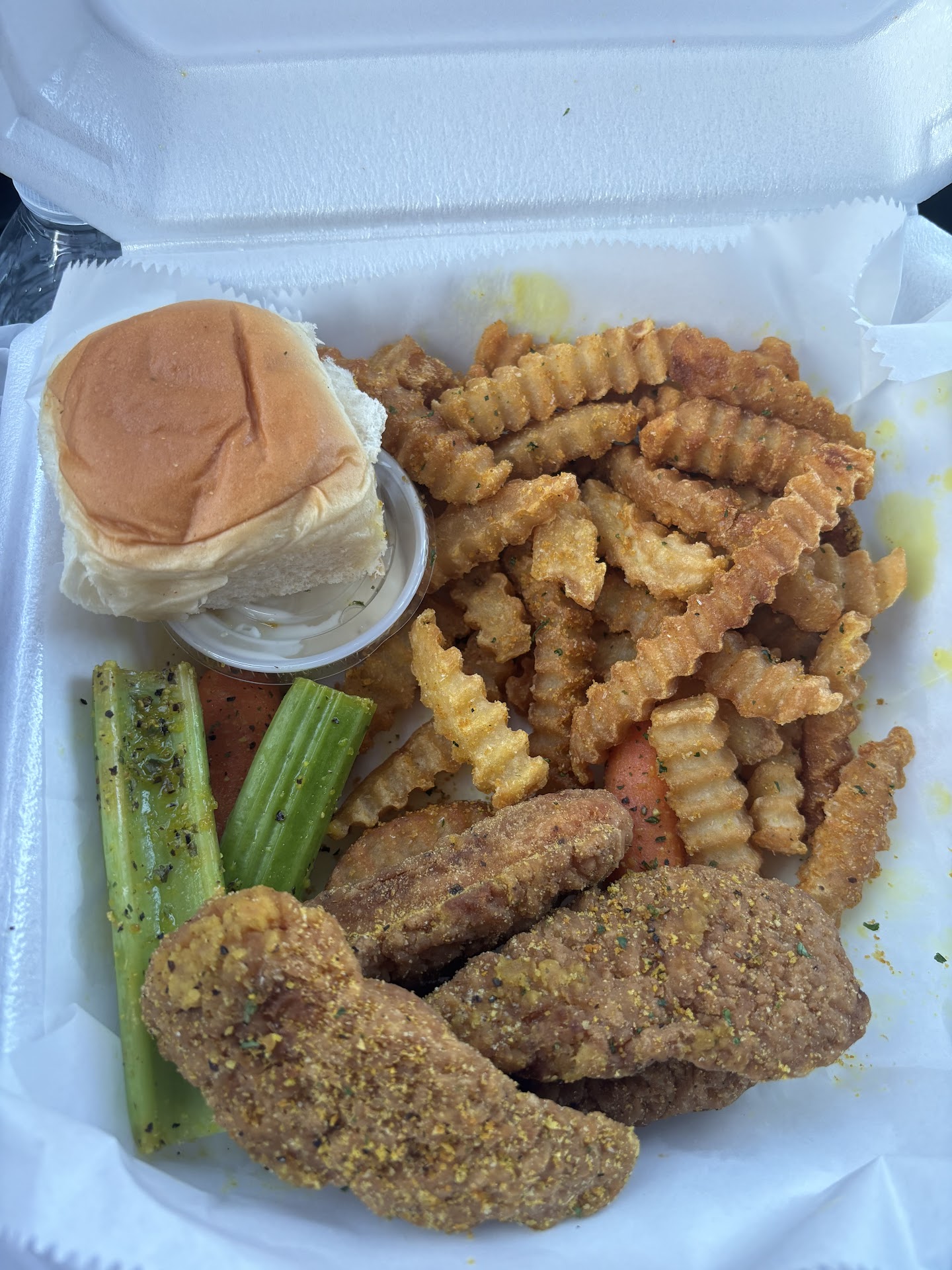 We ordered a 5 piece whole, HOT and 10 piece party, Honey Gold and an order of fries.
