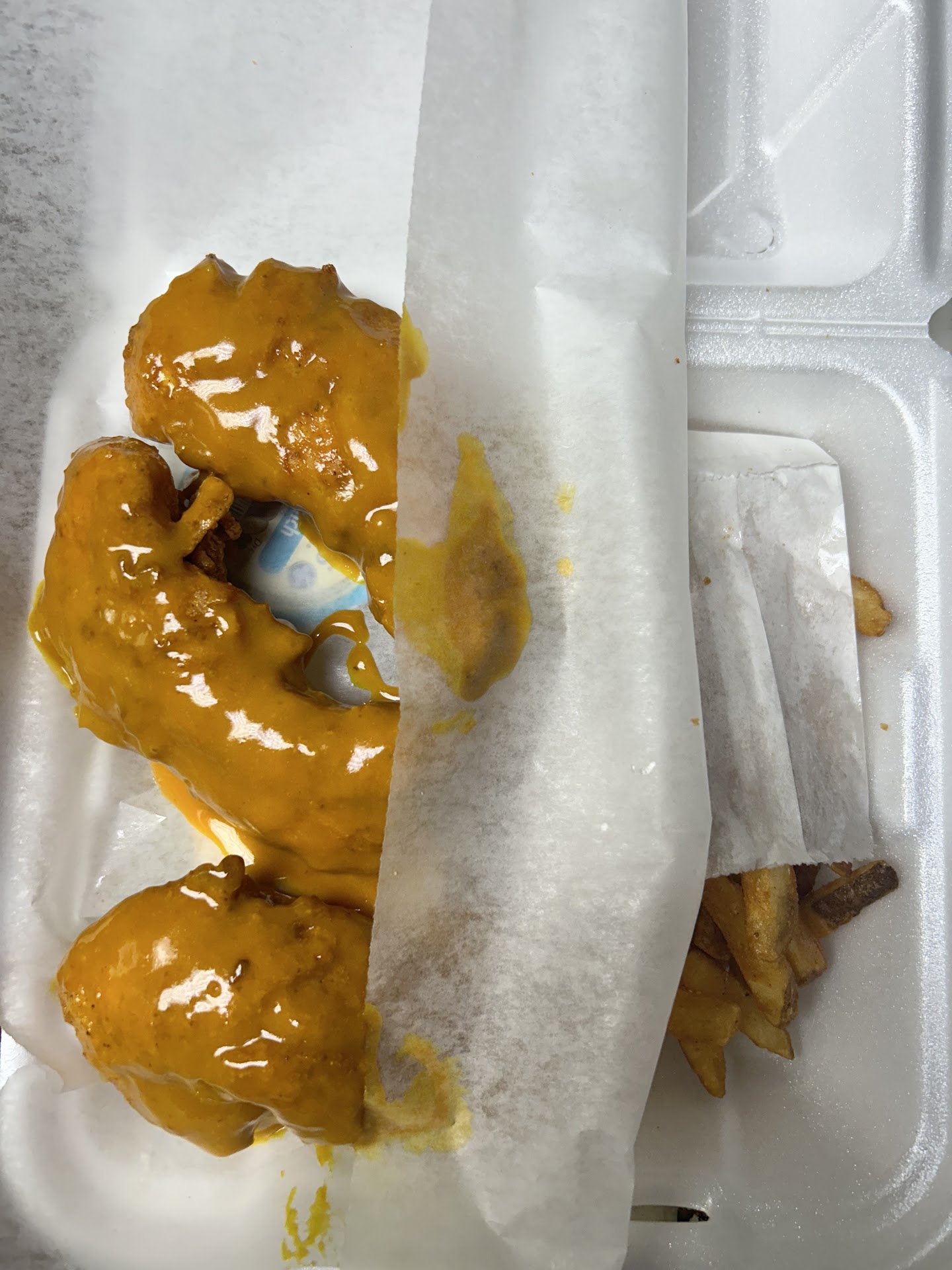 Read moreI only go there at night on my way home from work. Usually, my experiences are solid, but this most recent visit frustrated me, so I feel compelled to leave a bad review. I ordered a ten-piece honey hot wings with onion rings. A few days after the winter storm, it was still frigid outside. I picked up my order and went straight home without checking it, which was my mistake. They got my order wrong; I received a five-piece mild wings with fries instead.