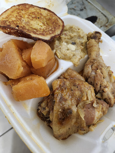 I had the baked chicken, which was juicy and perfectly seasoned. My sides were classic comfort food: macaroni and cheese that tasted just like grandmaās, and greens that were absolutely phenomenal. And the bread deserves its own shoutoutāwhile they have rolls, I tried the cornbread and water-fried cornbread, both so good I almost wished for a glass of milk to go with them. All of this for only $14!