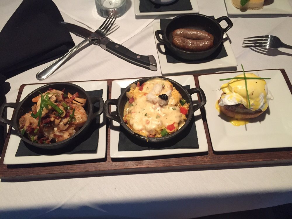 Appetizers we ordered the deviled eggs with corn meal fried oyster. ( one of the best bites of food I have ever had) we also ordered the souther sushi it was also very good but not near the caliber of the deviled eggs. For dinner my wife ordered the seafood flight which was very good. I mix and matched with the scallop Benedict (excellent), Redfish and cheese grits (excellent), Muscovy duck and sweet potato casserole (good) let me clarify my good... This dish was great but my duck was chewy, but that was my fault. I should have ordered the duck cooked medium well not just medium. The sweet potato casserole was amazing.