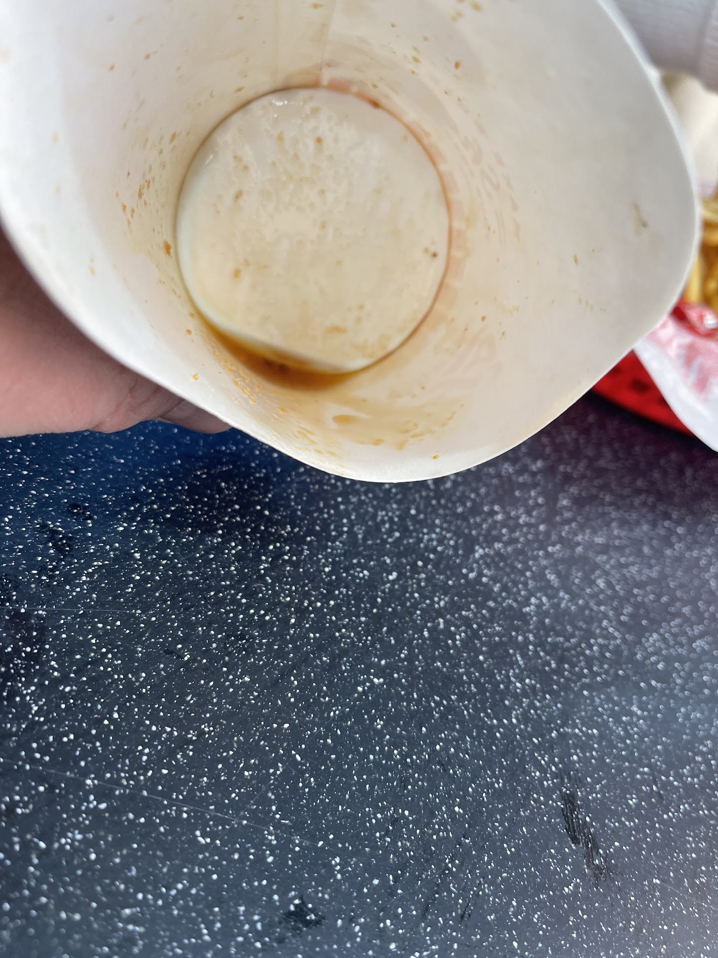 The food was messy since we both ordered ketchup only burgers, we were given enough ketchup to cause the whole sandwich to fall apart and mask the taste of the meat entirely. Not to mention, I saw a gloved male cook touch the outside of his pants in his genital area with his gloves and proceed to place his now dirty hands on and inside the fry station.