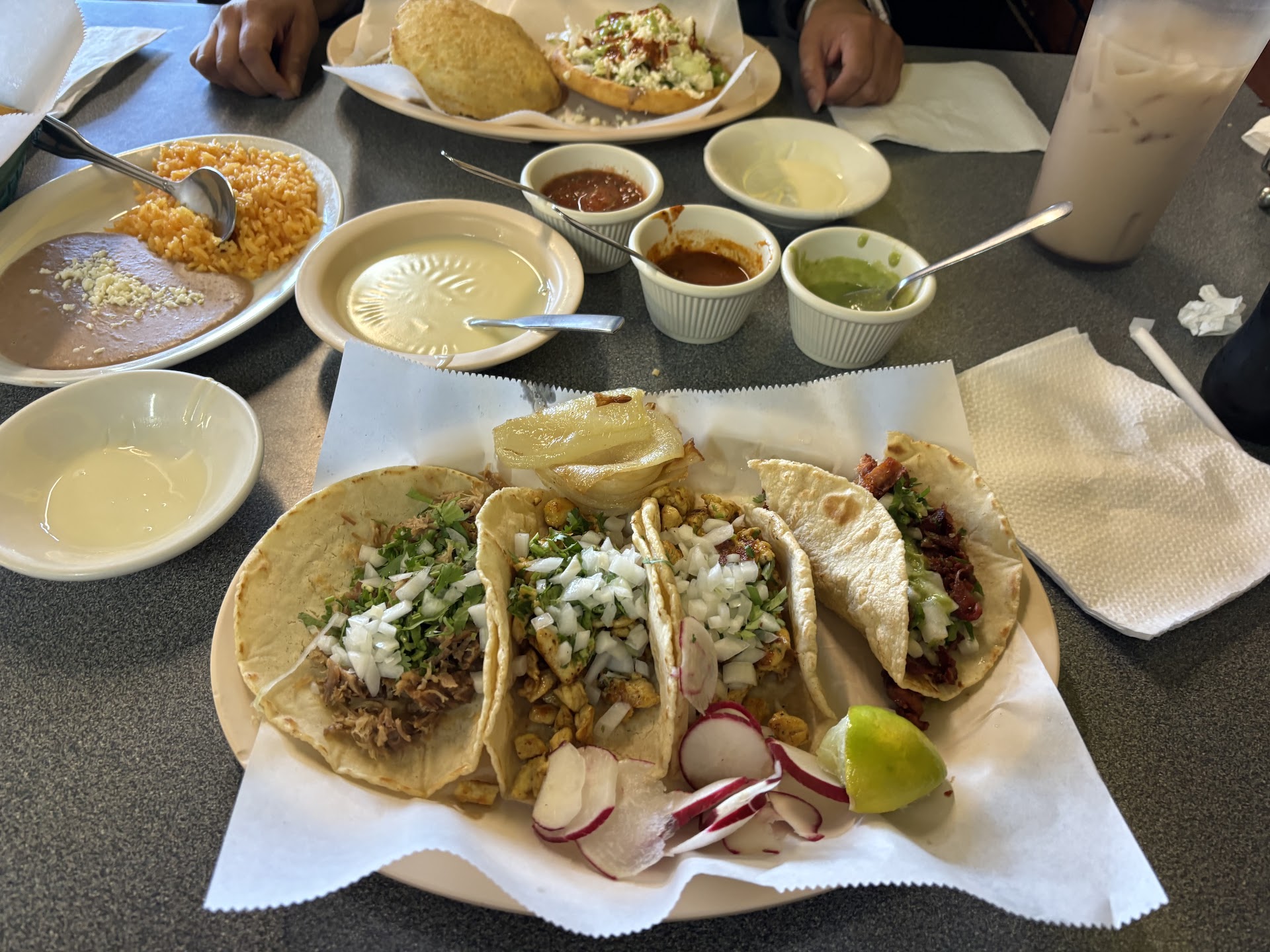 I’m from Los Angeles, California. This food is as close to Mexico and authentic Tasting Mexican food as it gets! All meats are delicious. All Salsas got flavor and spicyyyyyyyy. My man and I come here for the burn hahaha I am Mexican. We get tacos (tortillas made by hand) it’s an order specifically if you do. Gordita, it’s a stuffed thicker lightly fried opened tortilla shell filled with meat of your choice, lettuce and cheese. Simple! A Sope is a thick tortilla pressed in like a holder for beans, meat, lettuce and cheese. I ask for no sour cream and another in salsa instead.
