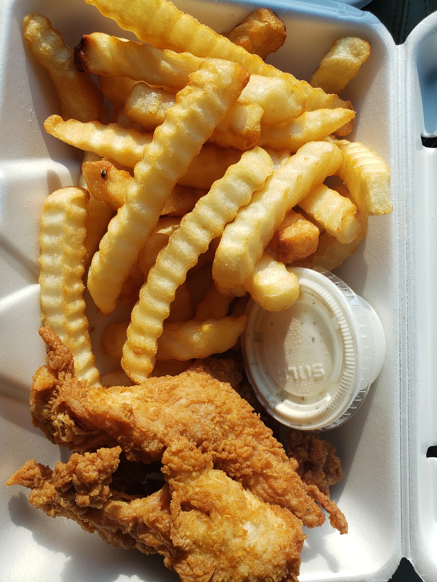 Read moreFirst experience: Went drive-through (pandemic), waited a fairly long time even though there were only about 4 cars ahead of me. Food was hot and seemed fresh. They forgot to put ketchup in my bag, or even ask me if I needed any. Drink was full of ice, barely enough room for any liquid. Chicken was very good. BUT ITS EXACTLY LIKE ZAXBYS. down to the crinkle fries (that weren't even seasoned), toast and slaw. And it's a few bucks more expensive.