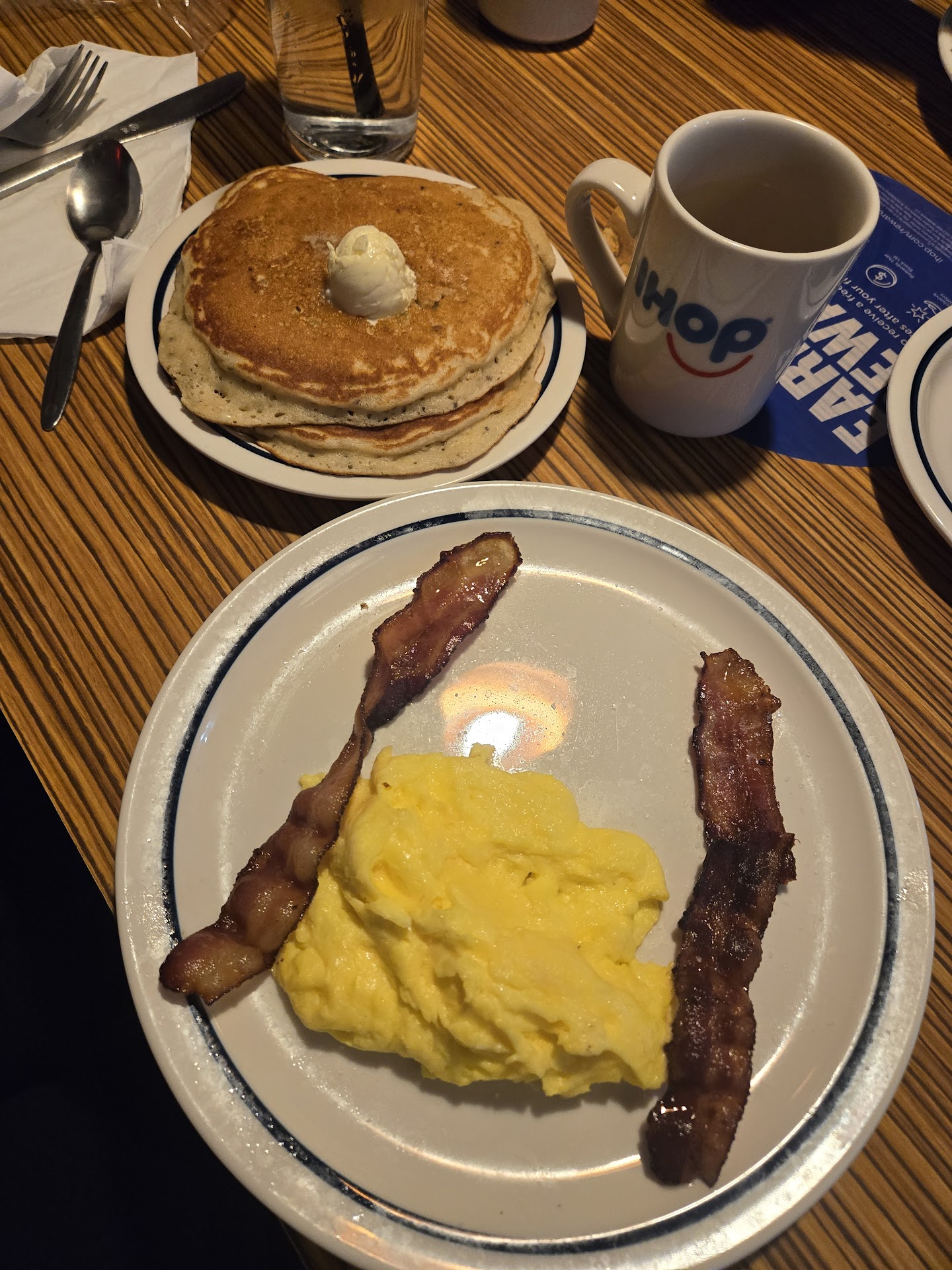 Read moreWe recently moved back into the area and havenât been to this location in over a decade. We have attempted to go here twice since moving and theyâve been quite the experiences. The first time going back here was ok, but they didnât tell us the credit card system was down until they brought us the check. Not a big deal as they had a manual machine. However, the last (and I do mean the last) time we went, they took our order (sampler, 2x2x2, and those pancake tacos and brought everything but the tacos. They didnât give us silverware so we went to the serverâs station and got some ourselves because after he brought our order, we didnât see him for 20 minutes. I unwrapped my silverware to eat what HAD been brought and the utensils were dirty. After 20 minutes, as weâre finishing the food that was brought, the server brings the rest of our food. We finish eating and are sitting there for 10-15 minutes. The server then brings our check and disappears. After waiting a few minutes for him to return so we could pay, we spent another 15-20 minutes struggling to get the IHOP app to load so we could pay our check and leave. It was busy, but I wouldnât say it was packed. There were quite a few empty tables. Terrible experience. We wonât...