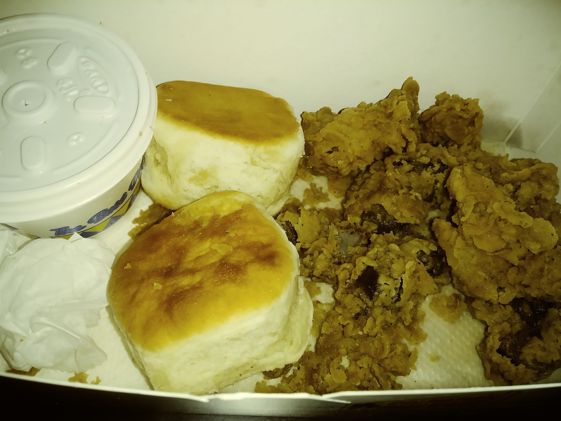 Read moreLast night you all played me.. 1st of all the open sign was off and it wasn't 10pm yet. I pulled up to speaker and you made me wait almost 4 mins before you even answered the speaker. Got to window and still waited another 3 or 4 mins only for you to pass me a box of old liver and greasy fries.. Then you didn't have any biscuits. I was very disappointed. I got my refund and went home in disappointment. The cashier was very sweet, he gave me no...