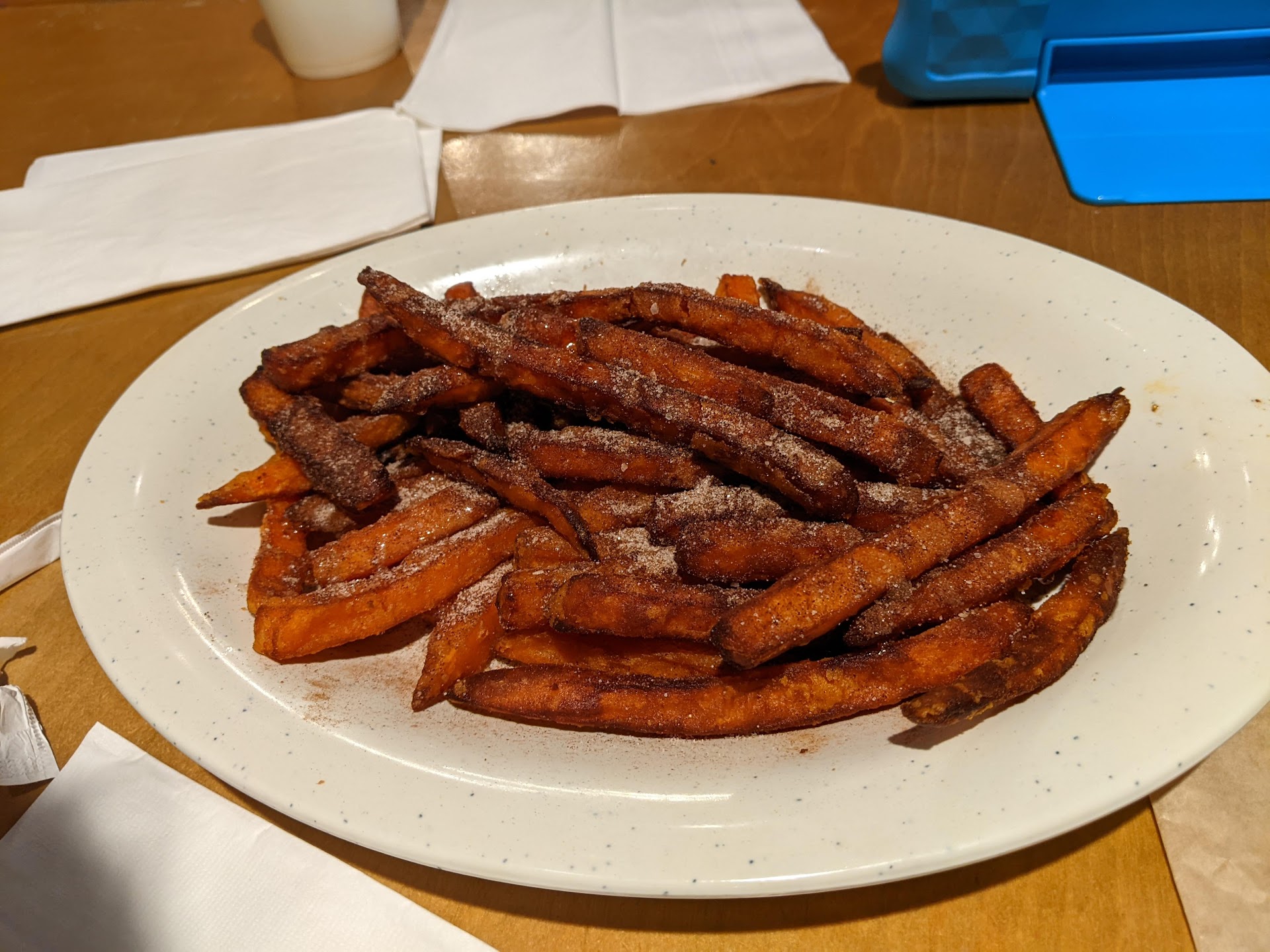 When she dropped off my food she said that the kitchen didn't have fries for my burger and fries, but she would bring them when they had fresh fries. Okay cool, I like fresh fries.