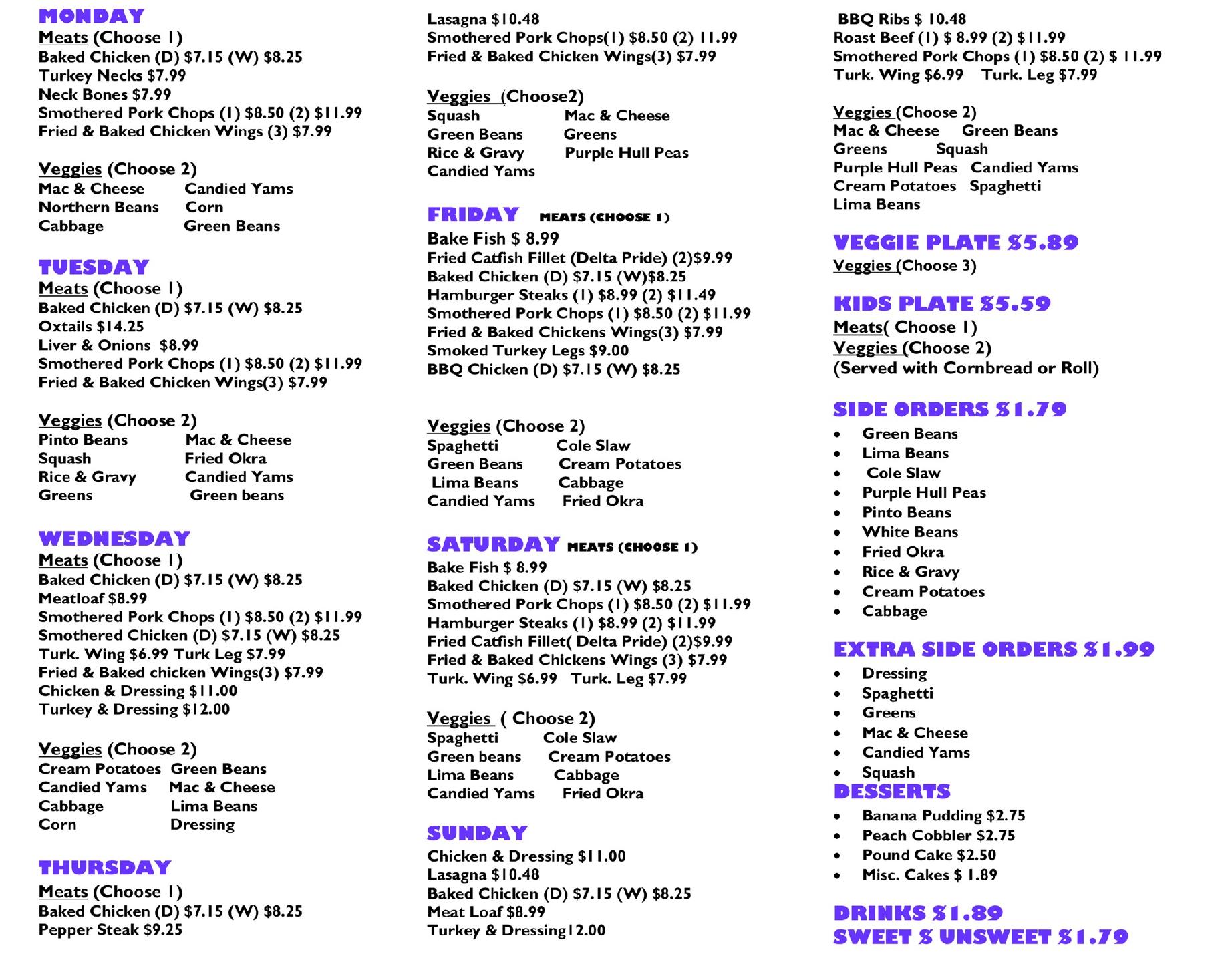 Read moreHad a taste for soul food and was in the Whitehaven area. Stopped here right at about 11:30a. Place was clean and food looked fresh. I ordered my vegetable plate. Portions were typical and I got a choice of bread. I ordered yams, mac and cheese, lime beans and an additional side : spaghetti. As the young lady was scooping my mac and cheese she had to fight strings of cheese as it looked soooo cheesy. I couldn't wait to eat. Once I was settled I jumped write in and was no longer excited about my meal. While, the spaghetti was saucy it was blah as if a can of off brand sauce was just poured over it. In addition, i only saw a speckle or two of meat. The yams had a weird taste that wasn't right. Now the mac and cheese, although not really soul BAKED mac and cheese was decent (which is why they even got a 2 star) and the Lima beans, while seasoned (more tasted like salt, pepper and red pepper flakes) they lacked the soul food taste I have has many many times eating these. The food experience won't make me rush back any time soon. The customer service was good though. No attitudes and even when I asked about prices, the information was gladly given. This is what got them the other star. This may be for someone else's taste buds but it surely...