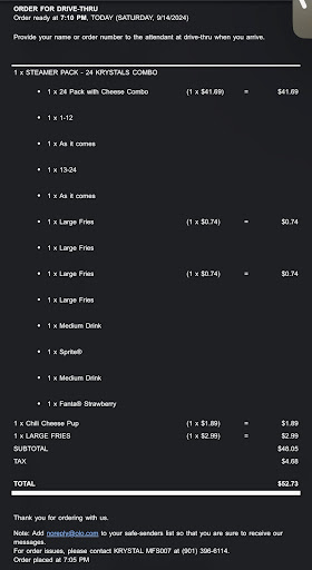 I believe Krystal’s could benefit from investing in customer service training for their staff. Improving communication and engagement with customers can elevate the overall experience and encourage repeat business. I hope my feedback will be taken seriously, as I would love to see improvements in the future.