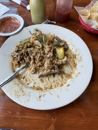 We then ordered our food. The fajitas came out cold. There is no steam and no sizzle to these fajitas. They are completely cold. My friendâs food came out completely wrong. The cheese dip never came. We had to ask for it twice, waiting 45 minutes for cheese dip. She ordered the full chicken and rice plate with bell peppers, onion, and tomatoes. She simply received chicken and rice, with no vegetables or even the rice and beans that accompanies the meal đ
