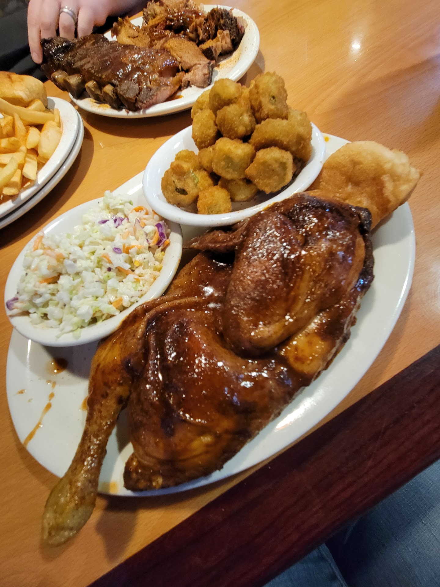 Read moreCannot recommend Marlowes. Picked up 15 minutes late in a beat up, old pink Cadillac limo by a driver who had nothing good to say about the limos except that they were broken down beaters with too many miles and too many years on them. He also bragged on the food and he couldn’t have been more wrong. First, the interior was filled with Elvis memorabilia, which is fine, it’s only a mile from Graceland. But the rest of the place is stuck in the 60s with dirty carpet, old furnishings, and generally had the appearance of a run down on its last legs restaurant. I had the two meat, two side combination. My wife had smoked half chicken with coleslaw & baked potato. My two meats were brisket and pork ribs with corn fritters and fried okra. My wife said the chicken was awful as was the coleslaw. The baked potato was cold. My brisket was pretty good but the chef dumped BBQ sauce all over it on the plate and mostly ruined the flavor. The pork ribs were horrible. Everyone knows ribs are smoked or grilled on a smoker with good smoke until they shrink on the bone about a half inch and have a darkish caramel color. They’re then basted or mopped with bbq sauce lightly about 3 or 4 times until the bbq sauce is baked in. Not these ribs. They tasted like they were pressure cooked for 20 to 30 minutes placed on a plate and had bbq sauce poured over them, then served. Just terrible! Nothing wrong with the frozen corn and okra deep fried and served. The place also had a bothersome fly that would not stop landing on or near our food.Now for the real shocker. For my wife and I, we got to pay $85 for that slop. I don’t want to eat bad food for free, let alone pay $85 for that opportunity. If you’re looking for good food at a reasonable price,...