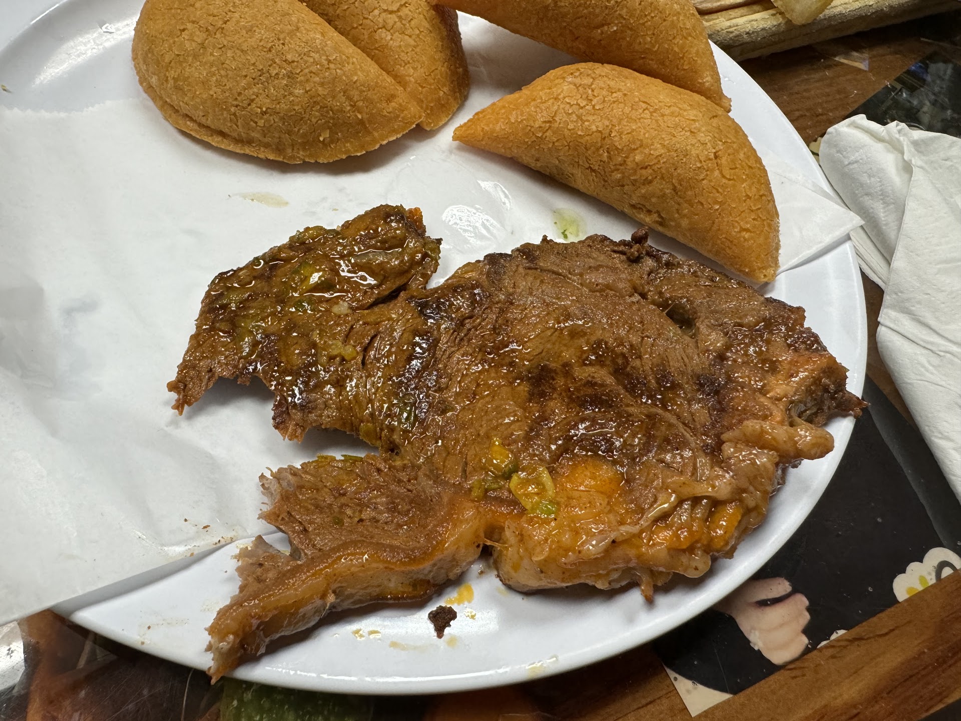 Tasted a bit of everything from the table, and the national dish was the most exciting—arepa, beans, meat, the whole deal. The fried pork, however, was a bit too fried for my taste (definitely on the harder side).