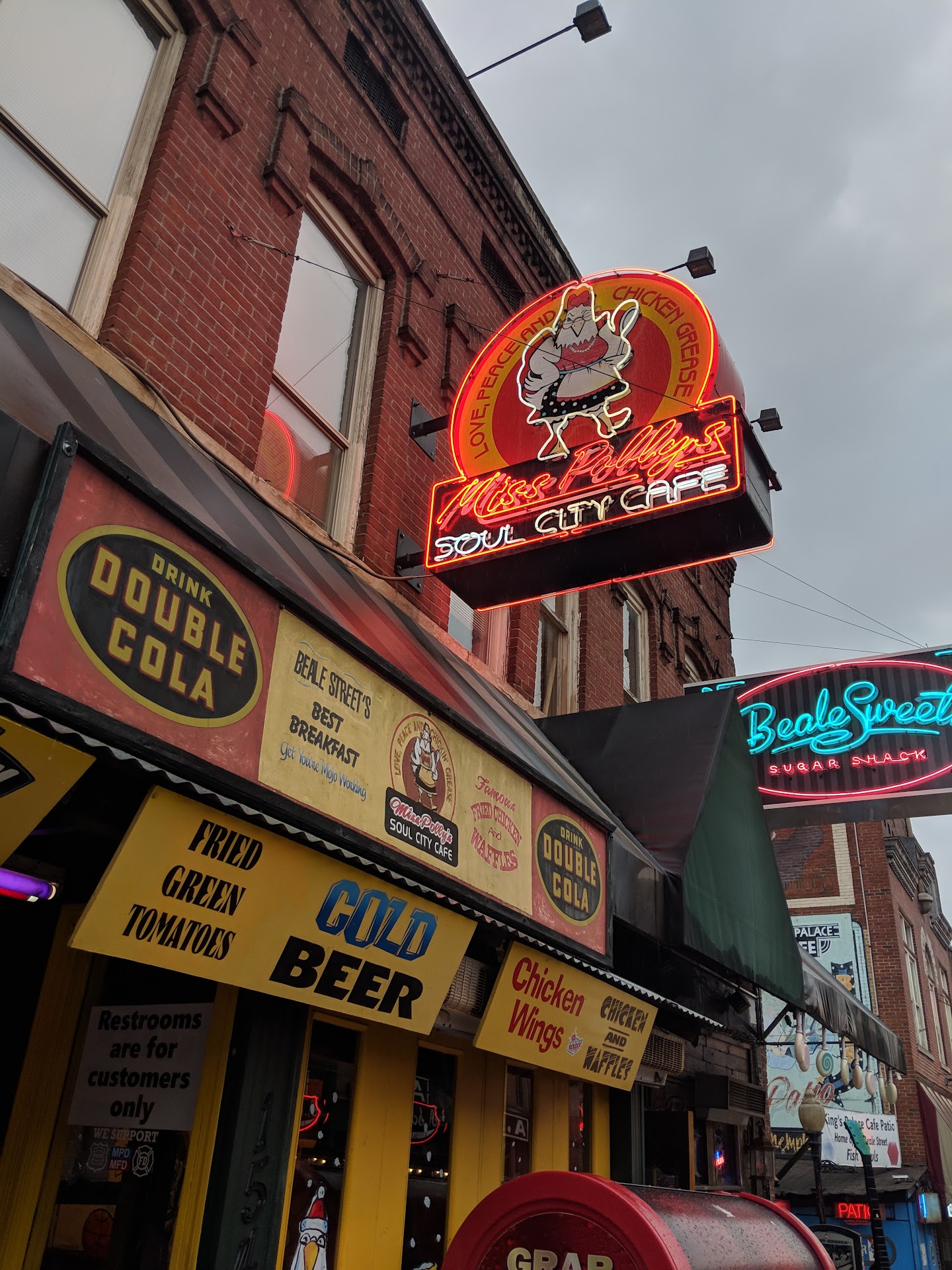 Read moreI searched "food near me" and Miss Polly's was near the top of the list. It was also highly rated, which piqued my interest. I walked 5 minutes (or less) from the Peabody Hotel and walked in. I was greeted with a smile from the server and told I can sit wherever. I sat and began looking at the menu. I was interested in chicken and waffles, never had them previously. I ordered "the Willie". Two pieces of chicken, a side, and a waffle. I also ordered a Ghost River Gold from a local brewery. It was good. The food came out and at first I wasn't impressed. The pieces of chicken seemed undersized and the waffle seemed a little crispy. I spread the butter on the waffle and put on the syrup. My first bite of the chicken was very hot! What was I expecting? I started eating the waffle while the chicken cooled and was pleasantly surprised! It had enough integrity to hold the butter and the syrup while providing a tasty crunch and still being chewable. I enjoyed the taste. The primo part of the meal was the fried chicken. It was spectacular! I wish I had ordered the 16 pieces. I would have eaten most of them. The batter around the chicken was crisp and tasty. The meat under the batter was tender and delicious. I think this may have been the best friend chicken I've tasted! Friendly folks, good service, and delicious food all add up to 5 stars for me. Highly...