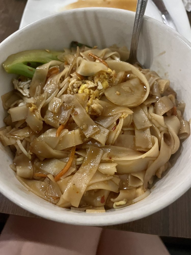 I just wasn't very impressed with the food. The chicken lettuce wraps were probably the best thing, about equal to what you'd get at PF Chang's before it went off the rails. The potstickers were a little greasy and didn't have a ton of flavor but the dipping sauce was good. I think the best main dish was probably Mr. Eddie's noodles; I stole a bite of that and it was decent. My pad see ewe that I ordered medium had no heat at all to my palate, and was mostly just noodles. Maybe two or three pieces of broccoli. A decent amount of chicken, I guess, but it was unbearably tough, to the point that I didn't hardly eat any of it. It was pretty disappointing. Lastly, my Thai tea wasn't sweet enough to suit my preferences.