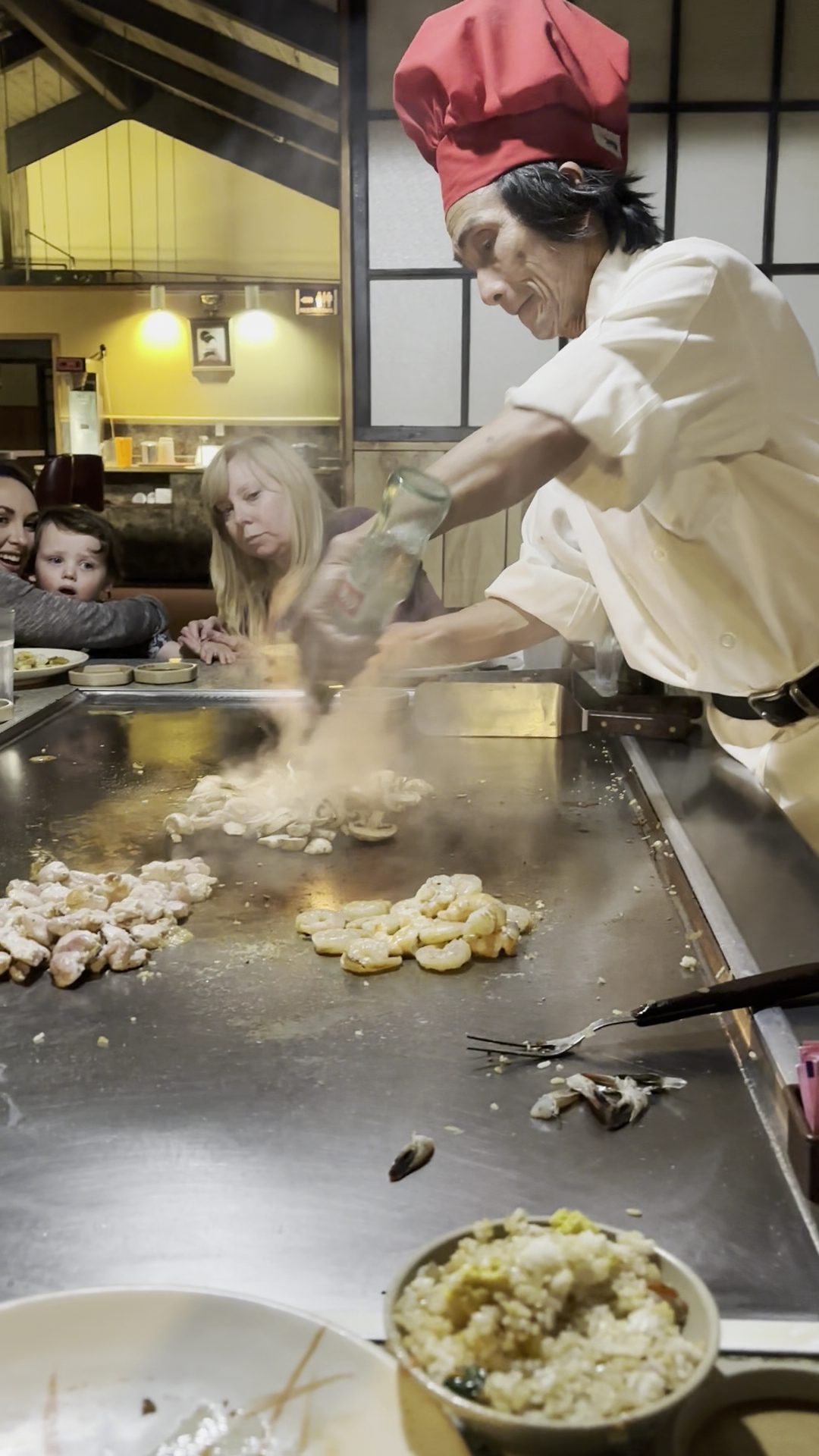 Read moreWe went on a Monday evening so the experience wasn't like a usual night. Normally we go on a Friday night or Saturday when it's full of people talking and all the hibachi grills are full of customers making ooh and ahhh sounds while the chef blades clink and tinkle on the grill. Our chef was wonderful though and his talent with a knife and serving fork were on point. Within seconds he had everyone laughing and relaxed while he cut and diced everything. His quick humor and attention to detail was amazing to watch. He skill with the hibachi grill was exemplary, and watching him slice food into bite sized pieces, do tricks with his cutlery, make jokes and pay one on one attention to each guest was a real marvel. By the time he was finished cooking, we were trying to eat, laugh and applaud all at once. He was great. And as always, there's so many different flavors and good cooking smells all around us that I can't decide if I want what is on my plate or what a family member has. All in all it was a memorable...