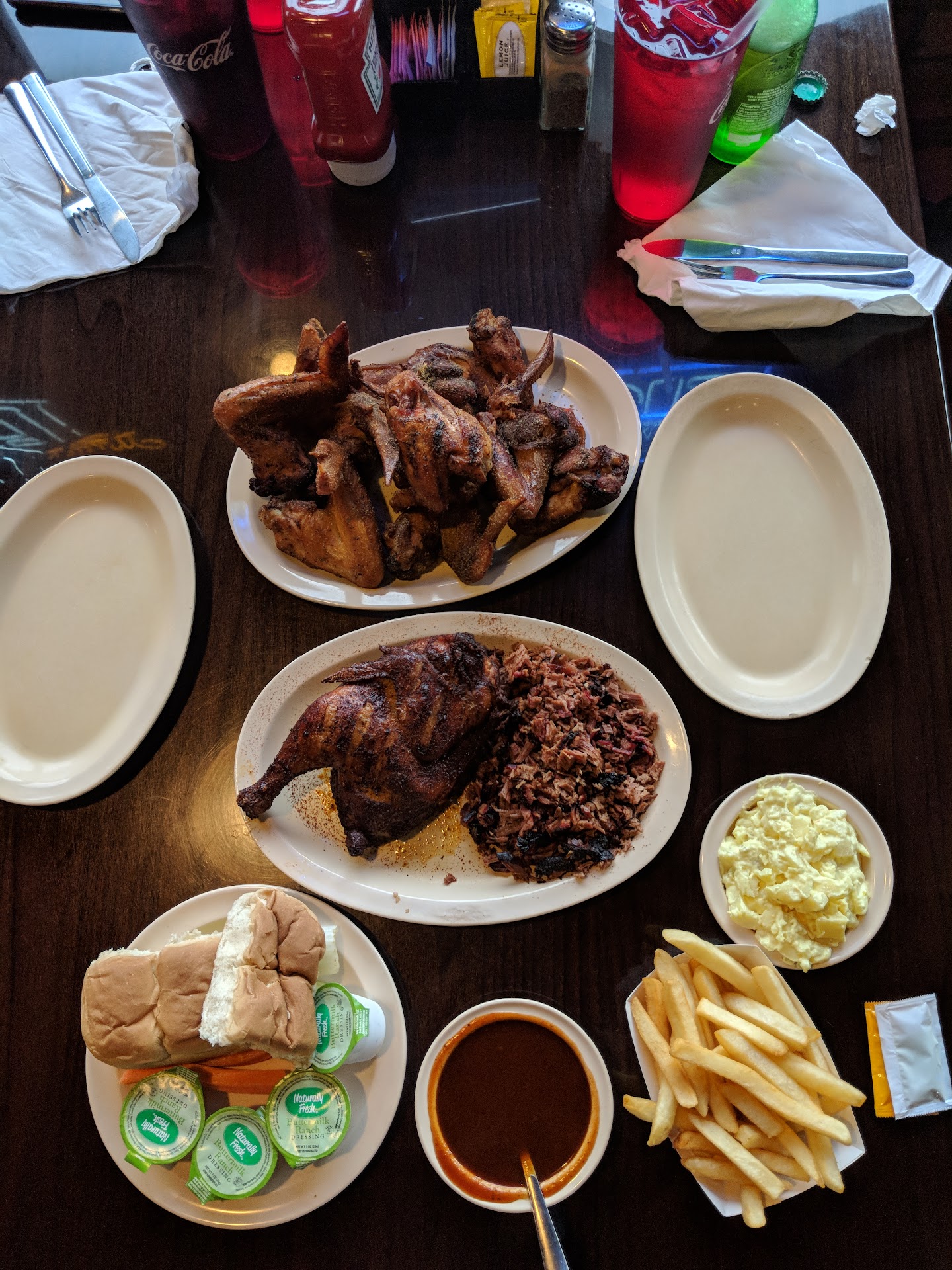 Read moreThis place is definitely a 'family business'!! My Mum & I came in on a rainy summer afternoon and we're greeted by the employees as soon as we walked through the door. Our server Kaylon was refreshingly transparent when suggesting menu items and with her answers to our questions. We ordered the 10pc wings done via her suggestion, a 2 meat combo with fries and potato salad to split. We didn't even finish it all. The wings are whole wings and they're large!! These are not KFC wings, ok! They were seasoned with chicken seasoning and piping hot!! Our meats for the combo were chicken (I know) and brisket. I wasn't pleased with the brisket but I ate it anyway. The chicken, like the wings, had good flavor and was jucy. Just before we got some togo boxes (we weren't ready) Kaylon suggested dessert... I can't lie, I love pastries, and the pastries here make me so happy I could eat one a week for the rest of my life (gotta go easy on the sweets). Made in house by Kaylon's Mum, you won't be...