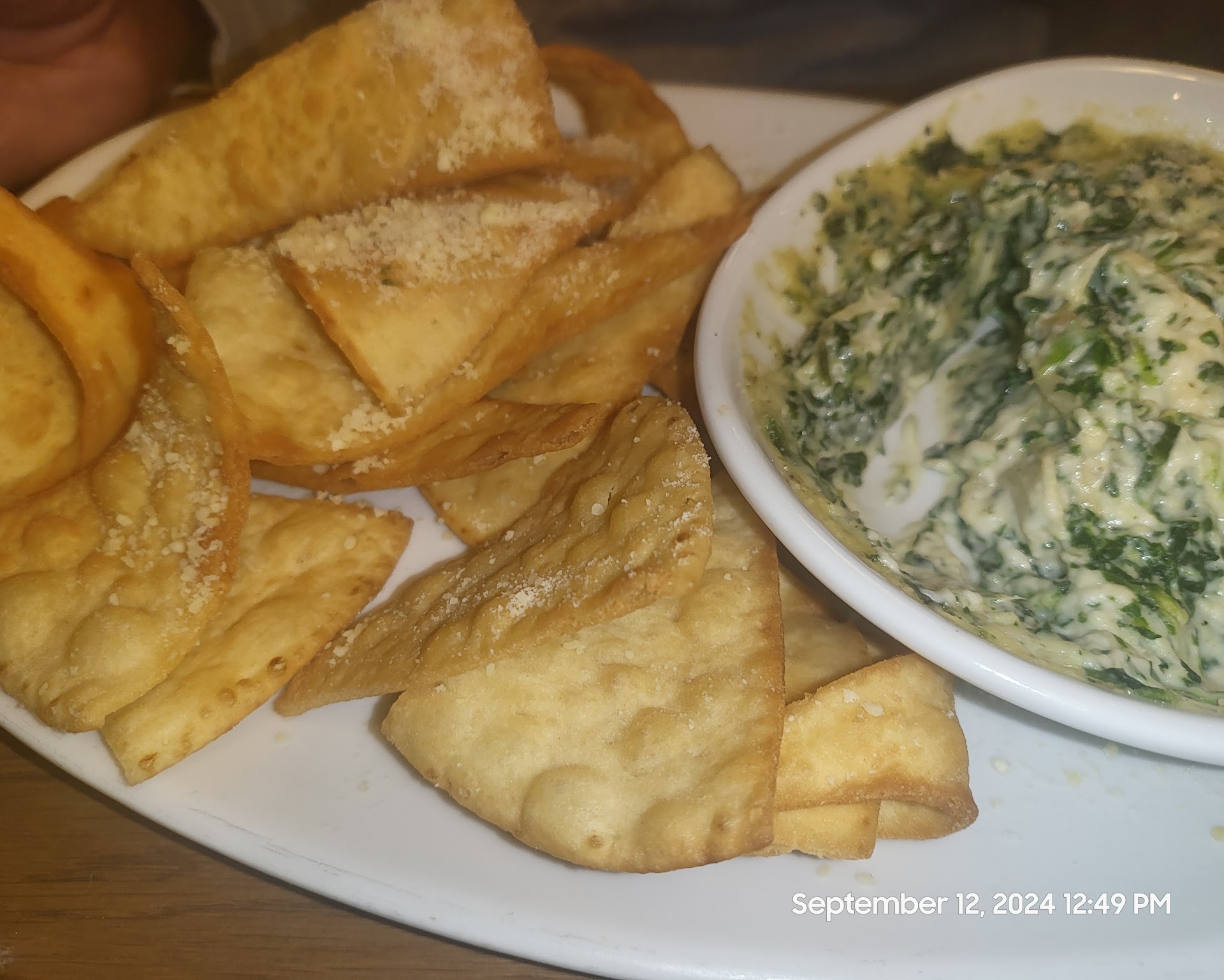 The restaurant chain as a whole has earned the rest of this rather low-starred review. I used to love going here simply because the food was good, and Olive Garden always has a wonderful treat, some amazing Gnocchi soup. Well, I'm assuming due to covid, they've "flattened" their soup. What used to be chicken, gnocchi, some spinach, and some glorious sauce, has now turned into a bit of glorious sauce, a WEE bit of chicken and gnocchi, and as many full-sized spinach leaves as they can fit in a bowl. I took about 20 bites of this soup, and 16 of them had a full sized spinach leaf. Between me and my girlfriend combined, we had about 5 pieces of chicken, and we counted 4 gnocchi. She had the same spinach problem I had.