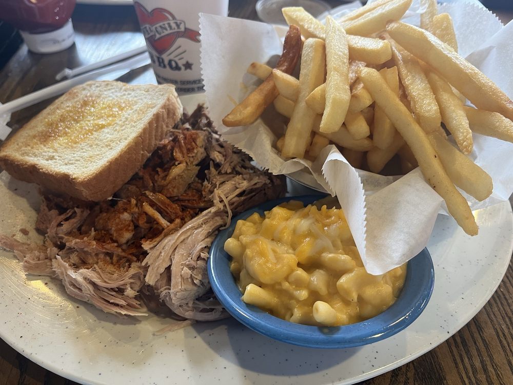Read moreWe were driving home to MN passing thru Memphis and we really wanted to try a good local BBQ joint. After googling we wanted to give One & Only a try. Only prob is GPS has us getting there at 945 and they closed at 10. I work at a restaurant and know how annoying it can be if you're slow, ready to go and a big family of 8 walks in at closing time. I didn't want to be those people, so I called ahead of time and they were very kind and said as long as we're there and ordering by 10 we'd be just fine. When we got there, it definitely wasn't what I was expecting, it was a small, cozy little establishment. Eric was our server, and he took excellent care of us! Super nice guy, chatted with us, joked with our boys, never made us feel hurried or rushed, and gave great recommendations. We ended up with the half rack of ribs with 3 meat combo (pulled pork, brisket, and smoked turkey) with sides of BBQ baked beans, loaded potato salad and FF. My boys all got the pulled pork sandwich kids meals. They said it was the best dinner they'd had all vacation! I couldn't believe how delicious EVERYTHING was. The dry rub ribs were so flavorful, tender. The brisket was my fav....the flavor was outta this world. Only think I would have changed would be how it was sliced....they had it sliced super thin. I just prefer a thicker slice.....seems more meaty that way. I normally am not a huge pork fan, usually just don't care for the flavor of it. But this pulled pork was really so delicious! I ended up eating the rest of the pieces that fell off the kids's sandwiches. The turkey was probably my least favorite, but it was still really good, just didn't even compared to the brisket. The sides were also fabulous! The BBQ baked beans were just as good if not better than the meat, and I'm not a big baked bean fan. The loaded potato salad was a perfect complement. I thought for sure we had ordered way too much food, but everything was pretty much licked clean! Thank you Eric for the Fantastic service and wonderful dinner in Memphis! Side note.....we ended up trying Central BBQ the next day, and afterwards wished we had just gone back...