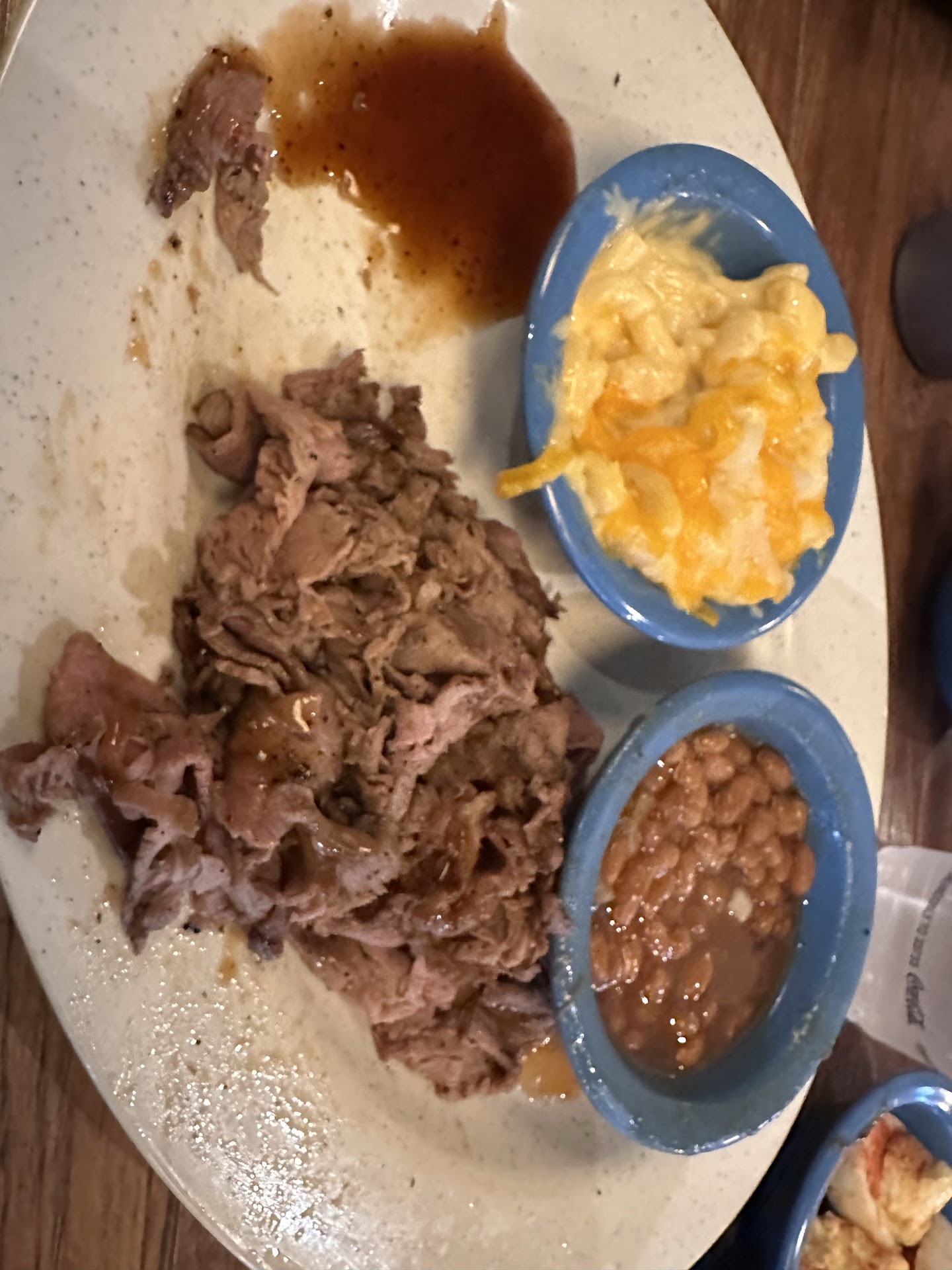 Brisket. - This was sad. It isn't brisket. Its Roast beef at best. There is a difference. They slice it this way because it isn't smoked for long periods of time. I don't believe they even own a smoker. I feel bad for Memphis because this isn't brisket at all. It is a completely different cut of meat. Do better.