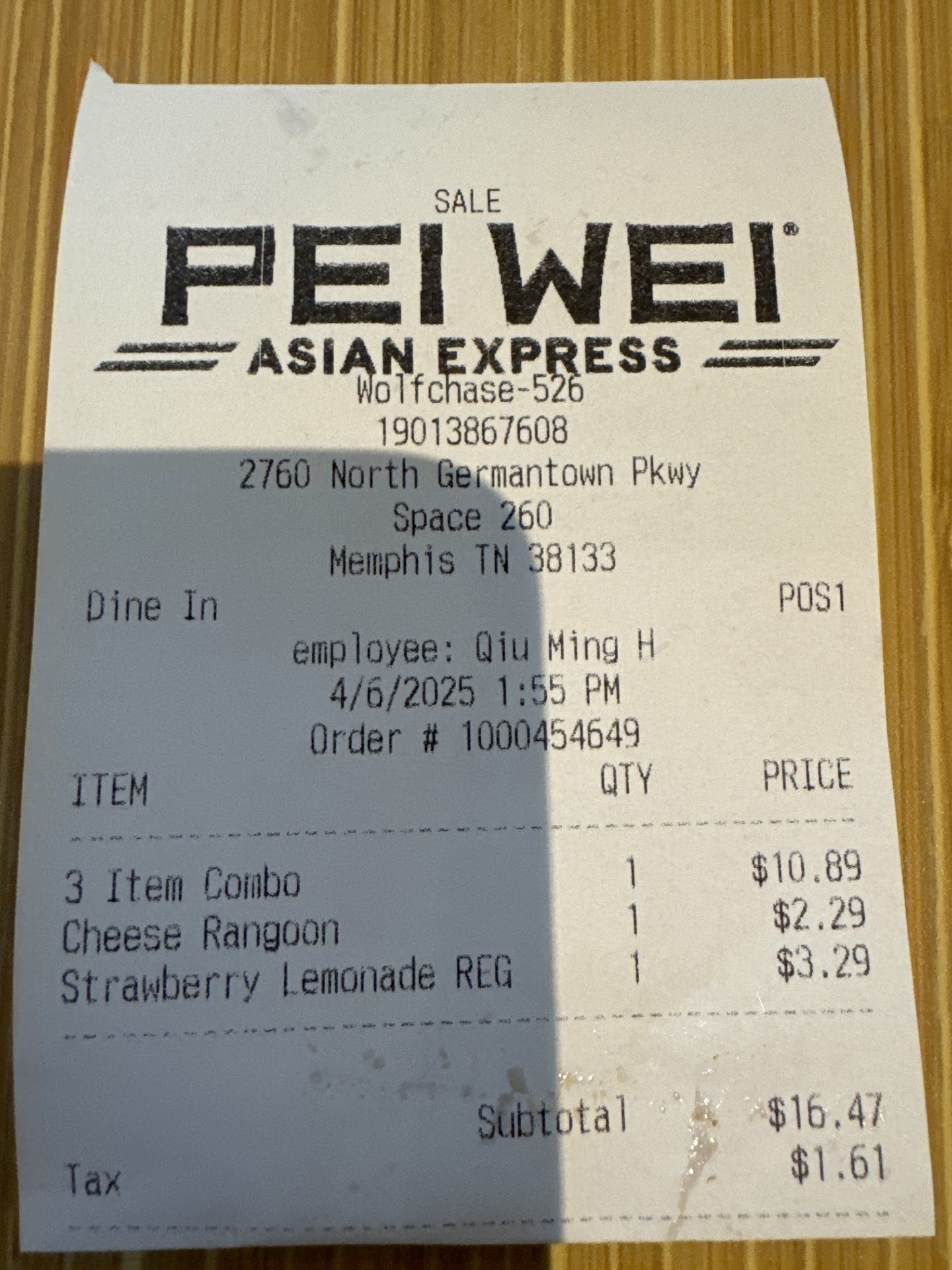 Disappointing Experience at Peiwei Asian Express