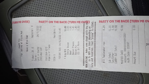 Read moreI ordered a salty pizza from this location today and I received a $10 Tastemaker, 3 topping pizza with bacon, banana peppers, and hamburger, and I did not receive all of the toppings. Just taste salt on the pizza. I called Pizza Hut, Get well Rd, Memphis, TN. I called the manager and stated my concerns about the pizza. I told him that I received very little toppings and I had eaten some of the slices. He stated it was Ok and to bring it back. When I arrived at the location, the manager changed his mind. He stated he could do nothing with 3 slices of pizza. He would not make it over after he stated he would. He is not properly trained and should be removed from this location. This location is in the Ghetto and it needs a make over inside and out. It needs another manager and the cook needs to be replaced as well. Pizza Hut needs someone who does business correctly to satisfy the customers. I would have never thought this location would be so harsh. I will never be back again. The windows, floors, and doors needs sanitizing and cleaned. No pizza hut signs are visible inside or on the windows of the location. Why ask for a tip on the order form if the pizza is...