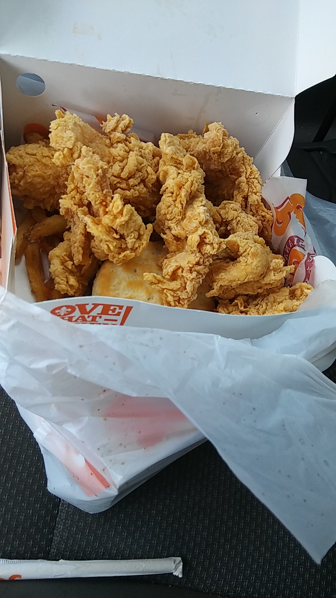 I waited at the drive through order box for about 5 minutes before they even acknowledged me. They finally told me they are only accepting credit cards. They seemed disappointed when I told them that was fine. Yāall I have never heard someone so distraught. This young lady was positively miserable taking my order. She had to take a deep breath before every sentence so she could sigh heavily while speaking. I couldnāt help myself and started doing it back. Anyway my food was disgusting. My chicken was soggy in one place and dried hard in others. The breading had fallen off of half of the chicken but it was so old the breading had started to stick to the chicken again in places. Like it was soggy and fell off then when it dried it dried back to it. Iām guessing that my chicken was left over from lunch. I feel like I might vomit but I hope I donāt. Ok if you eat here god bless you I will pray for you. Iām...