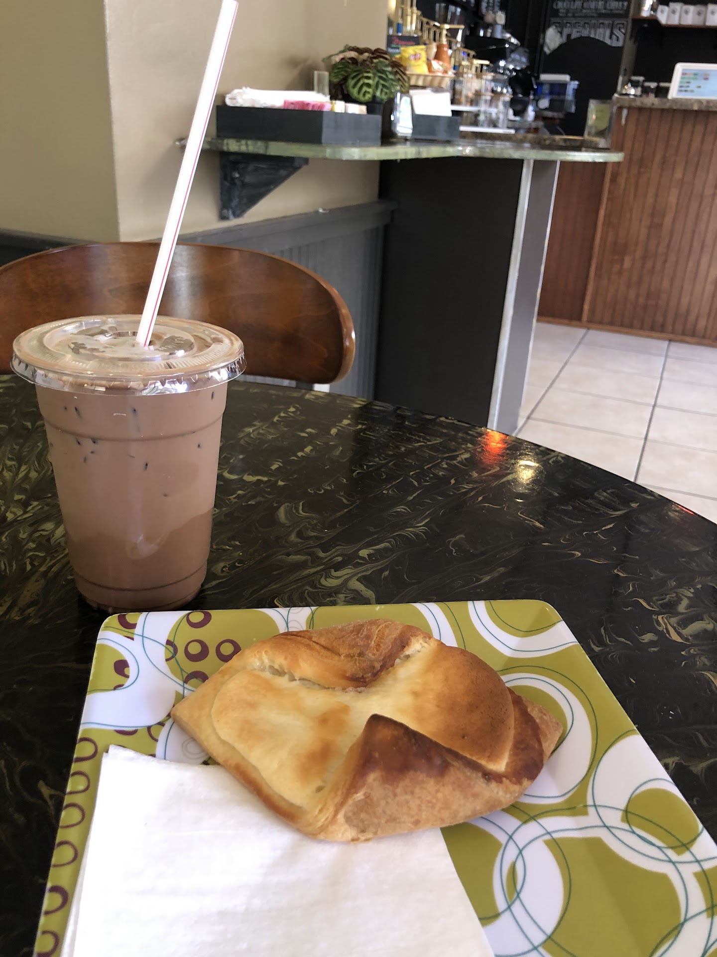 Read moreNormally I don't come this far north on Main, but I definitely will venture up again. Great spot! From walking in the door the staff and owner were very kind and welcoming. The gentleman at the counter checked on any questions about the food and drink menu. I got the "charcoal" frappe which is really good. I honestly don't know if it had charcoal in it. It was mocha and coconut and so good. I'd be hard pressed to try something else on the menu. I've never had nitro coffee so maybe I'll try. Oh, the croissant with chicken salad was really good too. I hate big chunks of celery so it was right up my alley. I almost wish I had someone to play chess with as they had a nice set up for that...
