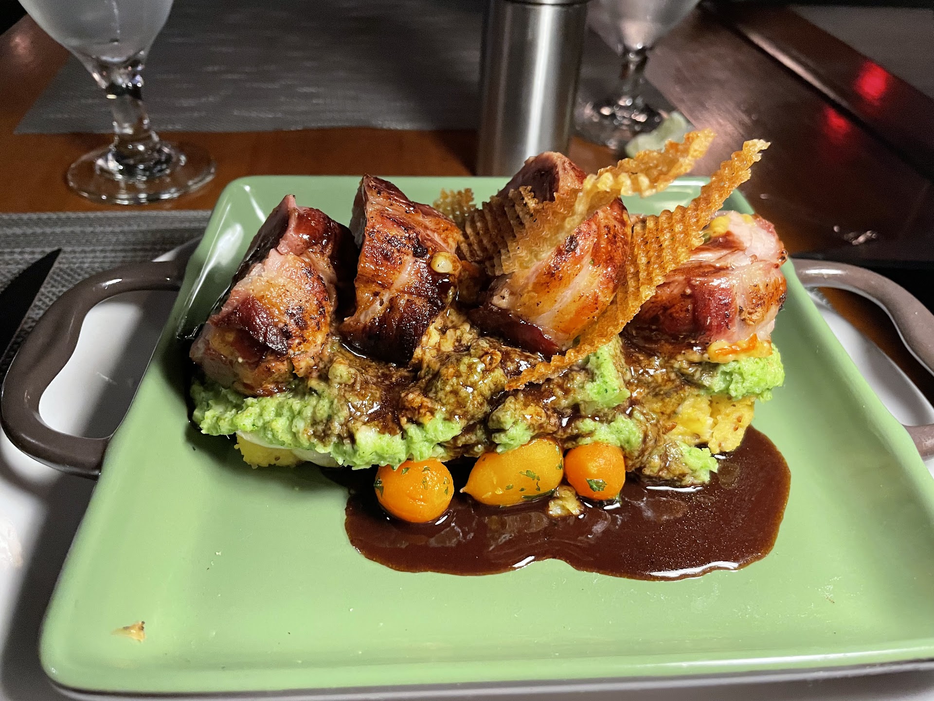 So, I’ll start with the good. Upon arriving, the host was very pleasant and seated us immediately. While the restaurant is beautiful, the seating wasn’t what I expected. Food was very good. Beautiful presentation. I had the lamb and husband had the scallops.