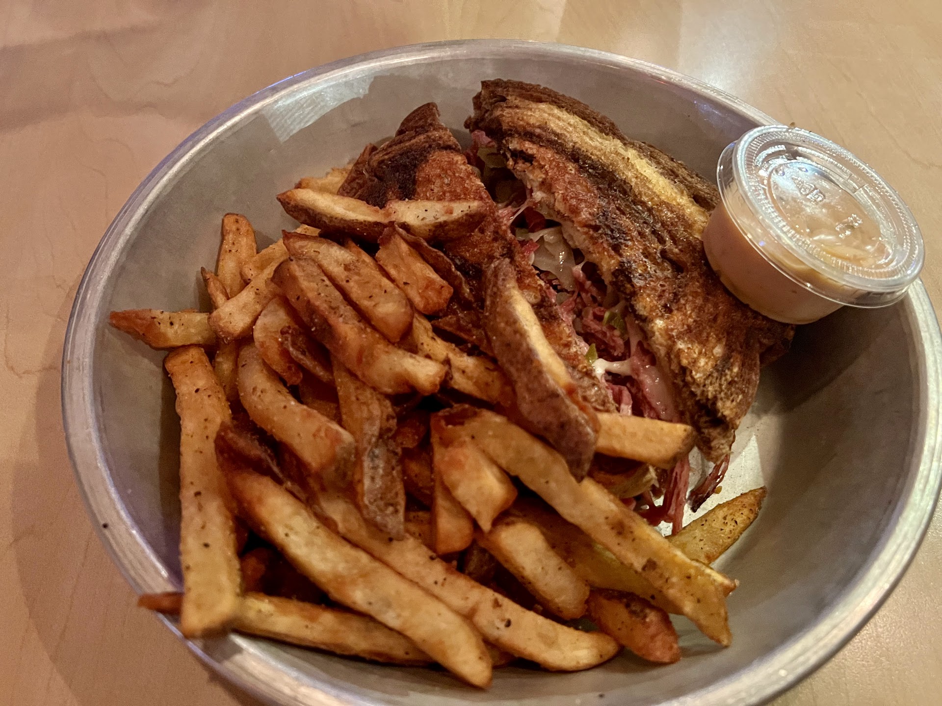 Read moreWe are a couple of vegan tourists and got into town late and needed some food. RP Tracks was close and fit the bill. We got the buffalo tofu fingers for an appetizer. They're fried tofu sticks drowned in Frank's Red Hot. They come with ranch or bleu cheese sauce, neither of which is vegan, so they let us substitute their tasty vegan tomato dijon aioli. For entrees the wife got the vegetarian tofu club which is vegan as-is except for the honey wheat bread. It was great! The tofu was prepared well and it comes with that same tasty aioli. I ordered the BBQ tofu. It was good, but the cole slaw wasn't vegan and an alternative side wasn't offered. Both came with fries; wifey got steak fries and I got waffle fries. Both versions were delicious fried potato goodness.