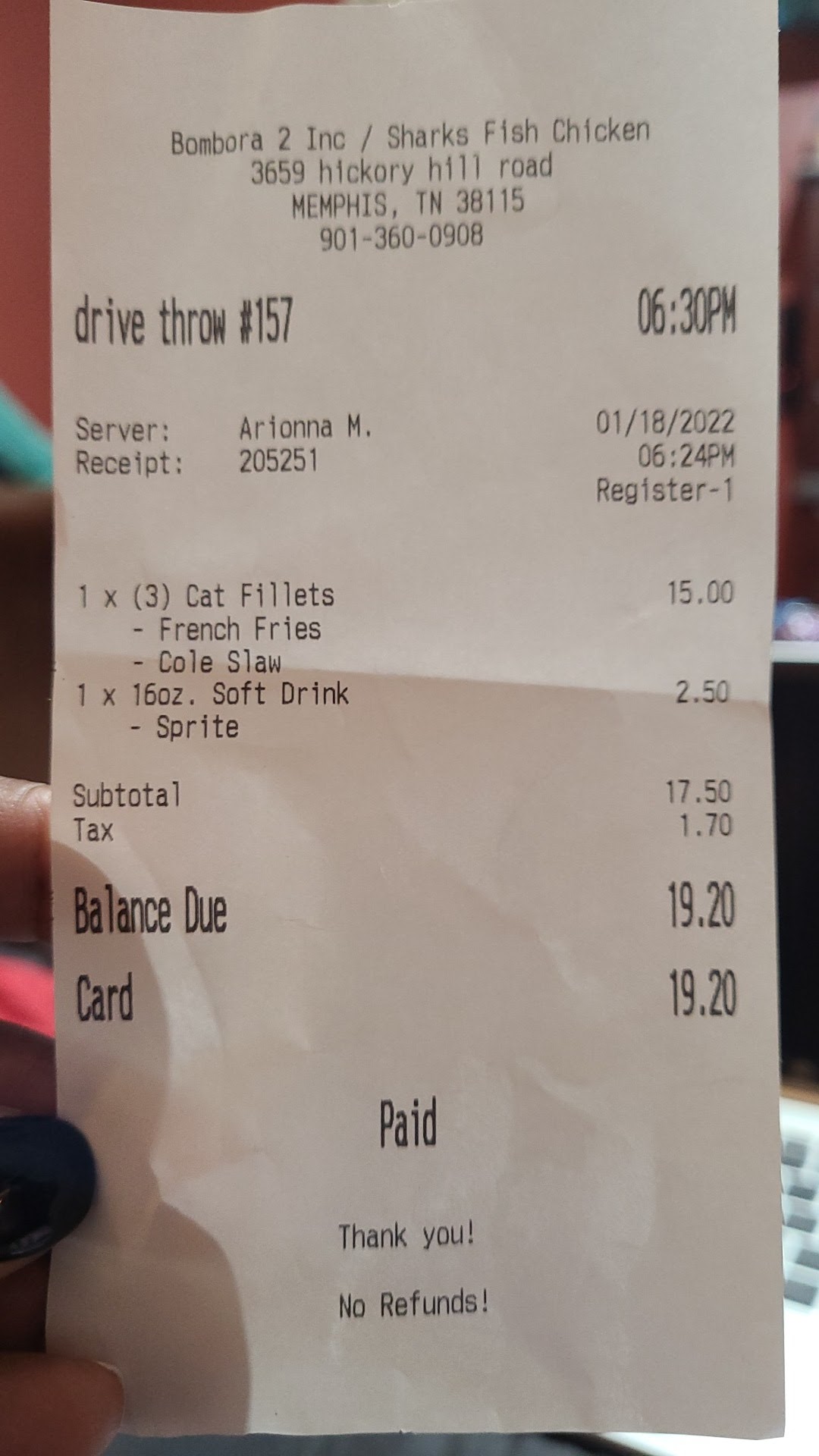 This is my FAVORITE FAVORITE spot here in Tennessee(Hickory Hill location is the ONLY ONE I frequent.)I LOVE catfish steaks and they are by far the BEST catfish steaks you could ever eat. They are well seasoned...thick and juicy and its enough to eat from a second time...the steaks & filets are very filling. One thing I hate is when they run out of them(but that's how it goes when you run a successful restaurant.) I eat there at least 3 to 4 times a week! My baby loves the wings & there desserts are delicious and a good size portion. OAN: There have been a few occasions where their was a lack in phone etiquette and the person was rude when taking my order! However, I've had several more positive and pleasant encounters otherwise I know how to spend my money elsewhere. It's worth the money trust...