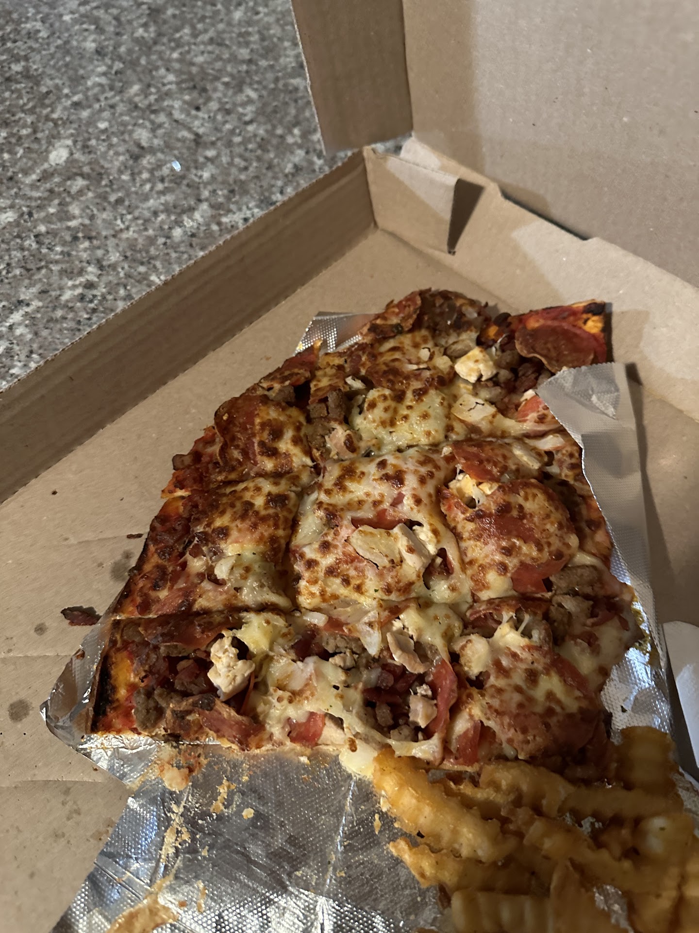Read moreI gave this place 3 separate visits before writing this review. My first experience was during Memphis black restaurant week. I had a bad experience with the owner and felt that he was completely rude. Despite they, and giving him the benefit of the doubt that he may be having a bad day, I decided to patron again for lunch a few weeks ago. Walked in at lunch only to be told there was no pizza sauce and it would be a 30 minute wait. Wait!! What? No pizza sauce at a pizza place. Ok...And I guess I learn slow, so today I ordered on the slice app. Cheese pizza $12 and cheese and bacon fries (NO bacon which was specifically requested on my order). So when I get my order my fries are covered with bacon. The owner sends back the order to be remade. Initially, there was cheddar cheese (as on the menu description). When the fries were returned, there was a scarce amount of what appeared to be mozzarella cheese on the fries. I for sure was not going to send the fries back AGAIN. I am on my lunch break which is why I ordered ahead. I received a pizza box for a large size pizza only to discover a very small flat bed pizza. I can honestly say I tried to patron this business and keep my money in my community. Unfortunately, I will NEVER patron this spot again and wouldn't recommend...