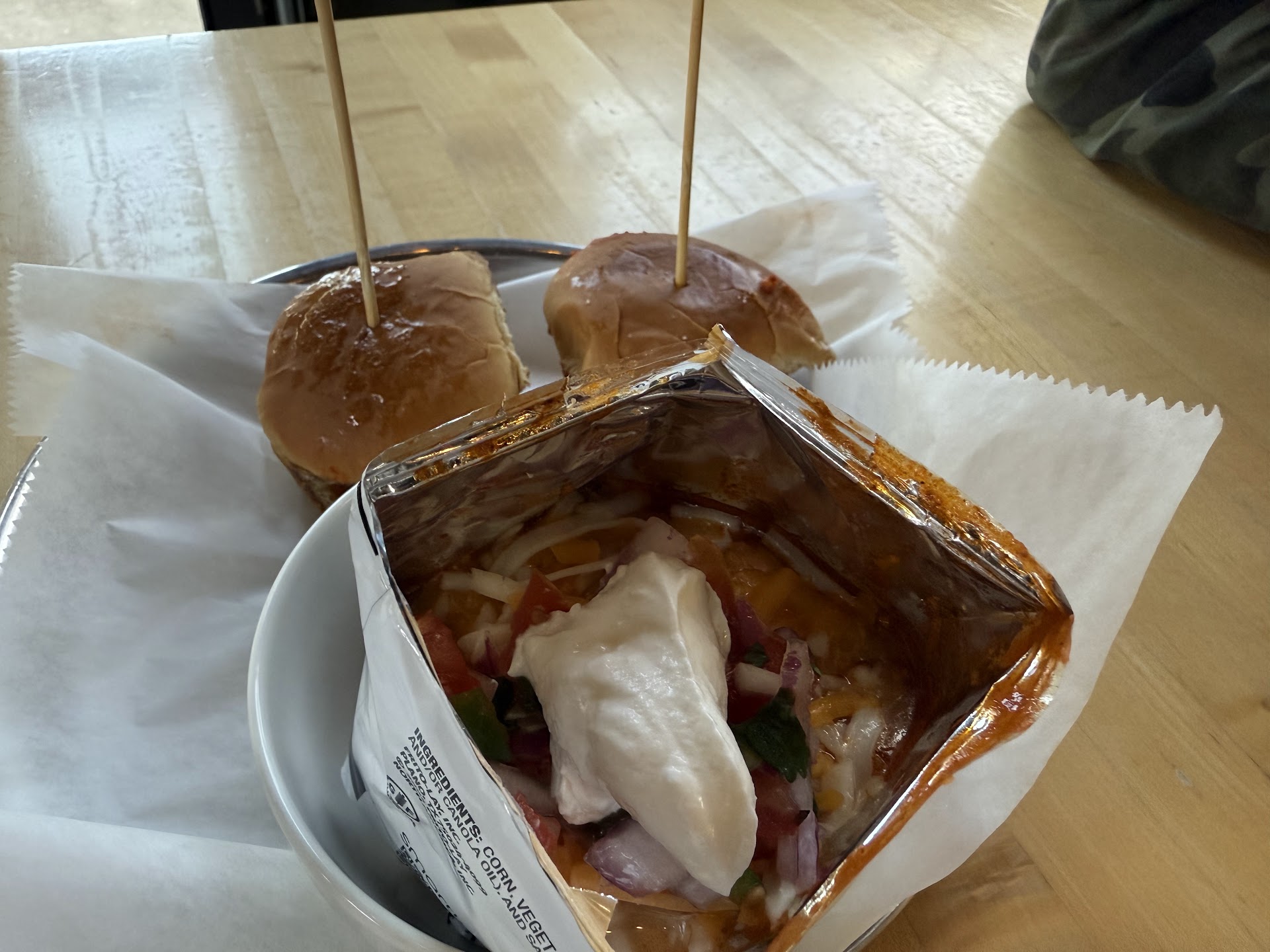 We skipped the drinks and appetizers—though it’s clearly a go-to spot for cocktails, especially on livelier nights. Since it was midweek, we kept things simple and dove straight into the sliders.