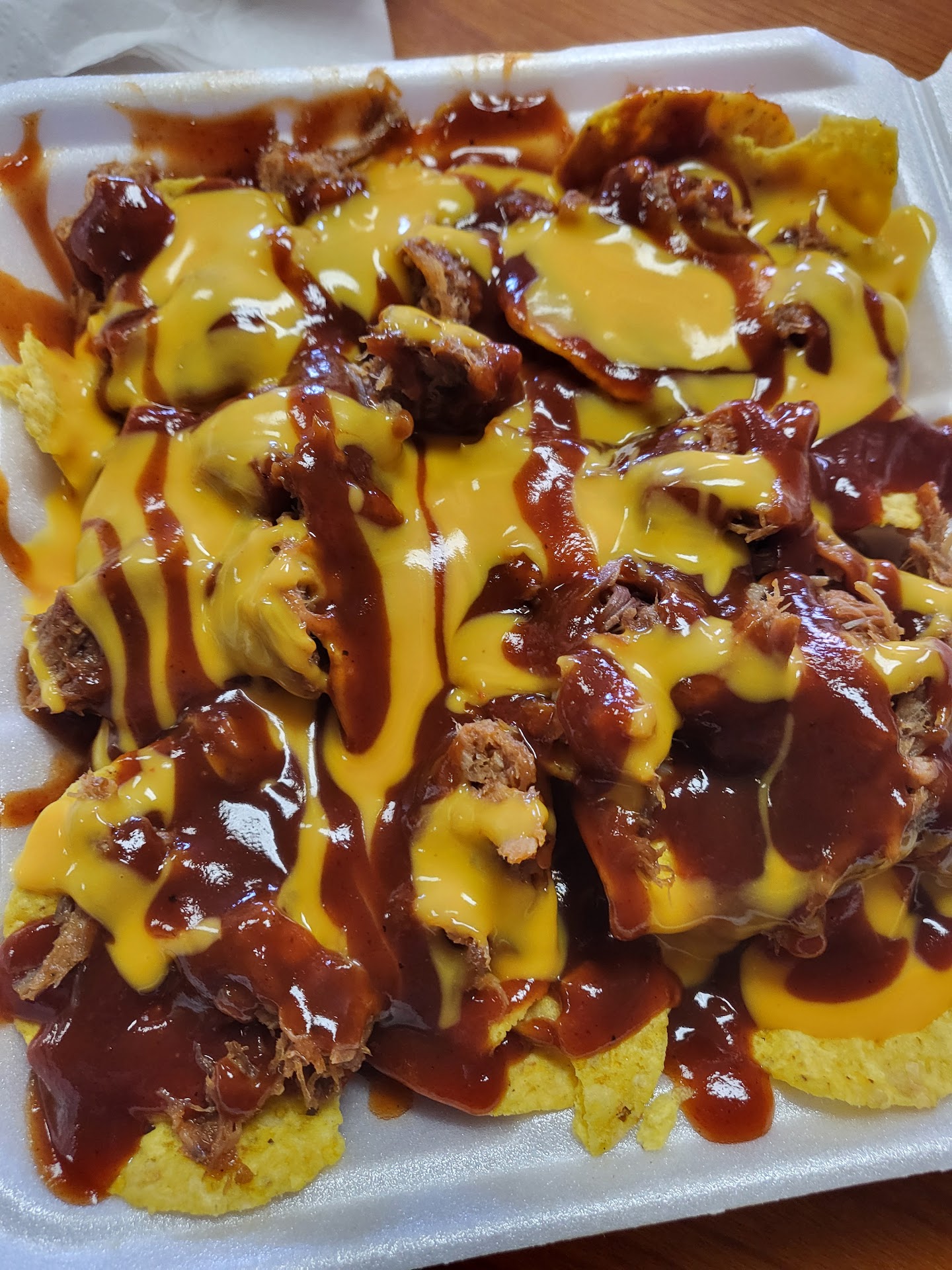 Read moreI was told this was the best BBQ in Memphis. We arrived right as they opened on a Monday morning, so I can understand that certain meats weren't available yet-although they should stay on top of it. I had the pulled pork nachos, and I should have asked for light sauce, as it was overwhelmed with BBQ and nacho cheese. The meat was unbelievably tender and delicious. Even though it was from the night before, it had a smokey flavor with spices I assume are secret. My husband had fresh ribs that fell right off the bone.