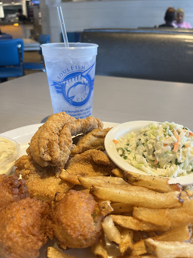 6/29/24 Our entire meal was horrible, my son had the chicken tender plate 3 tenders & fries w/hush puppies. Tenders were very dark & old. Hush puppies were hard, & the fries were re-fried some soggy, some very dark, & some hard. (Awful) the waitress didn't cook it but she knew the food was horrible when she brought it out!!! The second plate was the same on the fries. The catfish was cut in half & so technically you pay 18.99 for 1 & 1/2 piece of fish with hard hush puppies & re-fried soggy fries and the macaroni was the ABSOLUTE WORST. Yall are a total rip off. The third plate was a catfish plate as well. One piece of fish was very dark & the other 2 pieces were fresh and light. Same soggy fries & hard hush puppies. Our waitress hardly ever came over to check on us, we had to keep flagging her down when we needed something & yes we tipped her still. I understand the position of a waitress or waiter. They also should know if they soley work for tips, do your absolute best, it will honestly make a difference. I believe in tipping any where I go. But today SOUL FISH CAFE gets 2 thumbs DOWN! I will not RECOMMEND any to be served like this. Now I'm up @ 3am with a bad stomach ache from your food I feel poisoned!!! NEVER AGAIN City of Memphis customers you've been warned!!!! The Poplar Ave location! We spent $78 for a stomach ACHE!!!...