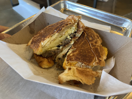 Really, really enjoyed this breakfast/sweets shop! We got a breakfast sandwich with egg, sausage, cheese (ESC) on a croissant; biscuit sandwich with ESC, and a biscuit sandwich with crispy bacon, pimiento cheese, and greens. The biscuits were so buttery and soft! And as a pimiento cheese critic, I was so pleasantly surprised by how delicious it was. The bacon and greens added a nice crunch to contrast the soft biscuit and cheese. The ESC sandwiches were very yummy, as well. Very safe if you are not an adventurous eater. We also ordered a cappuccino, hot (plain) latte, and a dark chocolate mocha. The coffee was delicious, and I cannot recommend the dark mocha enough - the dark chocolate and coffee flavors compliment each other so well. The waitstaff is super friendly and helpful, and the space is really nicely decorated. I wish I had taken pictures of it!