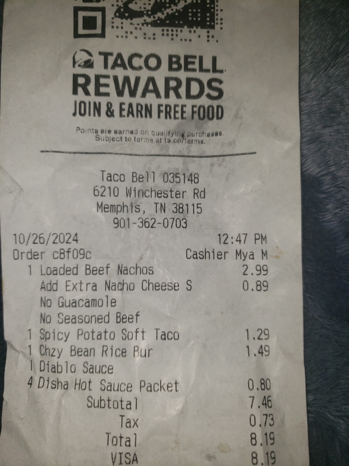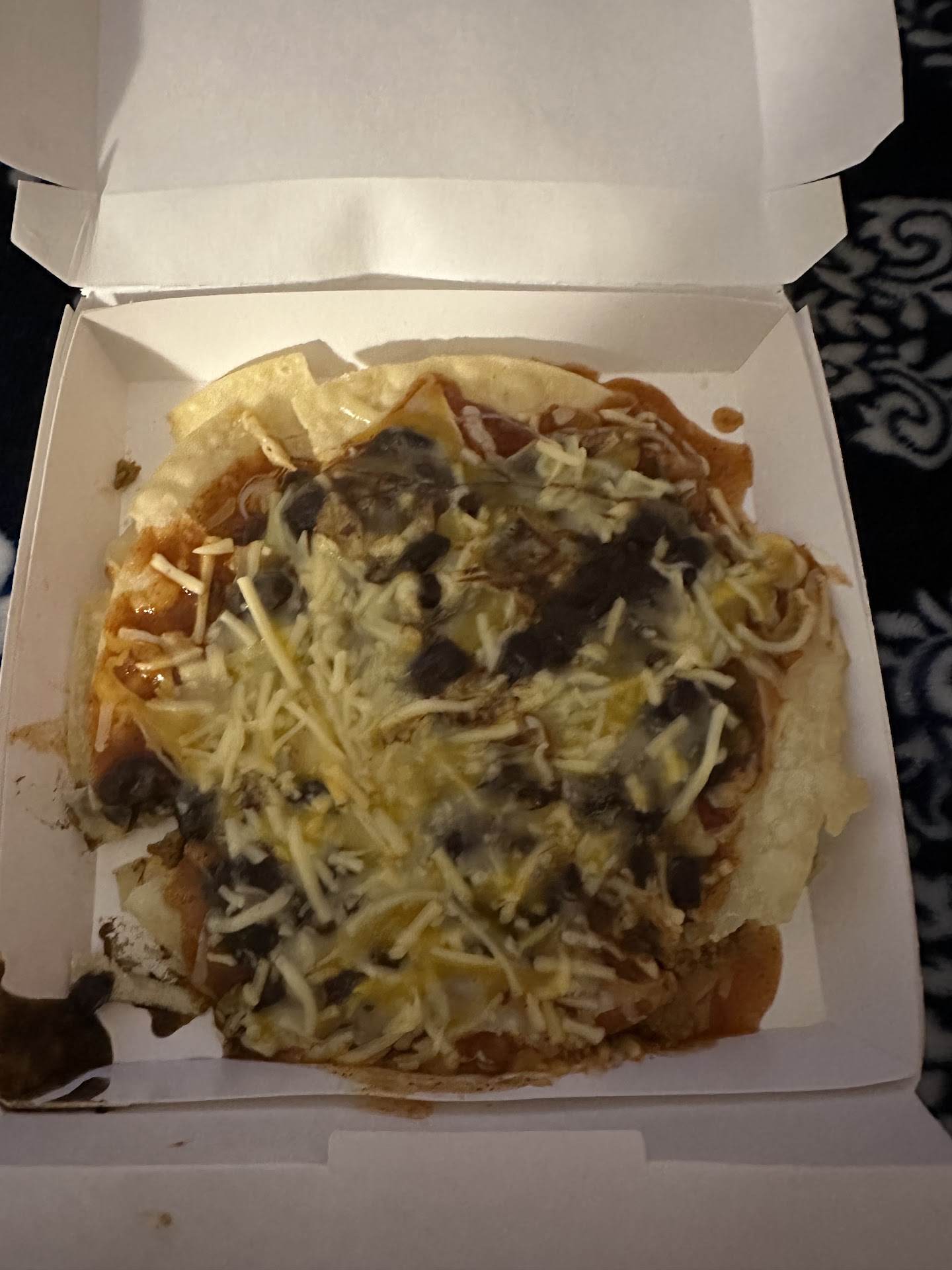 Read moreThis location has problems that need be addressed ASAP. Ordered online went to pick it up and found that we was missing 5 tacos and both of the nachos was done wrong and a quesadilla was missing as well. We gotten the missing tacos and one of nachos remade. What's crazy about this situation they wasn't even busy there was no excuse for the screw up and having only 1 person do the work while other employees and the manager hid. I'm so fed up with this location. Pulling pants up with gloves on and not changing them. I seen enough of this joke of a location goes to show 2nd shift usually the problem at fast food place makes me wanna go spend more with another place that I kno will fix your food right and not get upset when you tell them that they messed up in...
