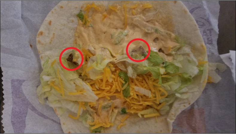Once home: I had ordered a Spicy Potato Taco but should have specified Spicy PotatoES Taco because my taco literally had 2 potatoes on it! My husband's Cheese Quesadilla had cheese MISSING on 2 of the 4 slices. The lid to my cheese sauce wasn't on the container. I had the Nacho Fries, but the cheese was dumped out all inside of the bag (got cheese sauce on my work shirt sleeve). I looked for my receipt to find the store number but surprise, no receipt. Oh yeah, and of course no hot sauce either. In fact, no sauce at all.