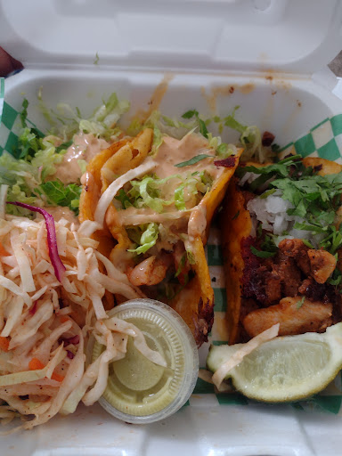 Ordered two shrimp tacos and a chicken taco and Mexican pizza. The pizza is so big and greasy... It has alot meat in it but the amount of grease was awful. It reminds me of Don't be A menace with the greasy paper bag. I ordered two tacos which was amazing, only problem they put the chicken and shrimp tacos in the same container. I am allergic to shrimp and they was ordered for someone else. They could have wrapped it in foil instead of putting them all together. Nevertheless the tacos...