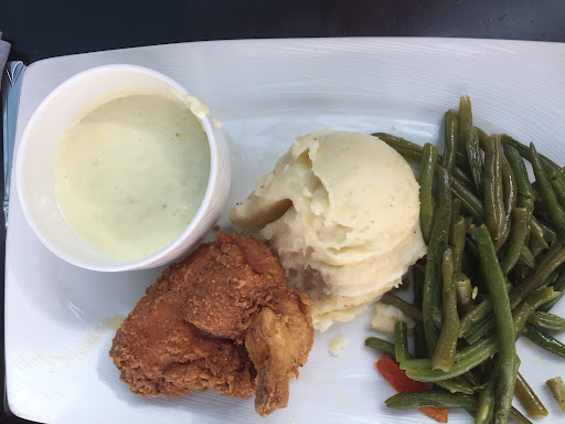 Our food wasn’t really worth the price. We got the Pimento cheese starter, and that may have been the highlight of the meal, but it only came with 6 slices of bread to split between us. My husband ordered his steak rare, but it came out nearly raw. The middle was a raw blue color. His mashed potatoes weren’t seasoned. I ordered ribs, which were very tender (good!) but the flavor was nothing to write home about. The twice baked potato was tiny, and the cole slaw tasted like it came from a grocery store.