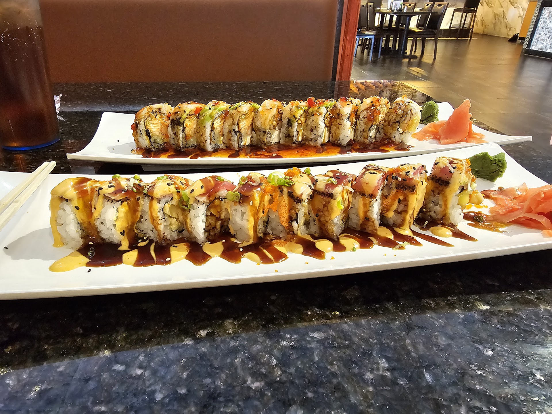 This last time that we went, the food was just as good as we remembered! My daughter wanted the Shumai (steamed shrimp dumplings) because "they were so good last time, and I just know they will hit the spot and make me feel better." We had dropped my husband, active duty military, off at the airport shortly before. So, we went and ate here. We also got the Fancy Nancy Roll, with the sweetened chili sauce. It was a little different, but it was still good to me, and she loved it. We also got the Black Pepper Tuna Roll, and that one is one of my favorites. She polished off all the dumplings, but we did have sushi to take home! The only downside to the restaurant is, imo, the tea which has a bit of a fruit flavor to it (it's not bad just hits a little differently. My daughter loved it) and the bathroom. The restrooms were clean, but the lay out is extremely poor. You can't open the big stall without hitting the door to the smaller stall, and then when you're in there, you can see all the way out of the bathroom through the gap...