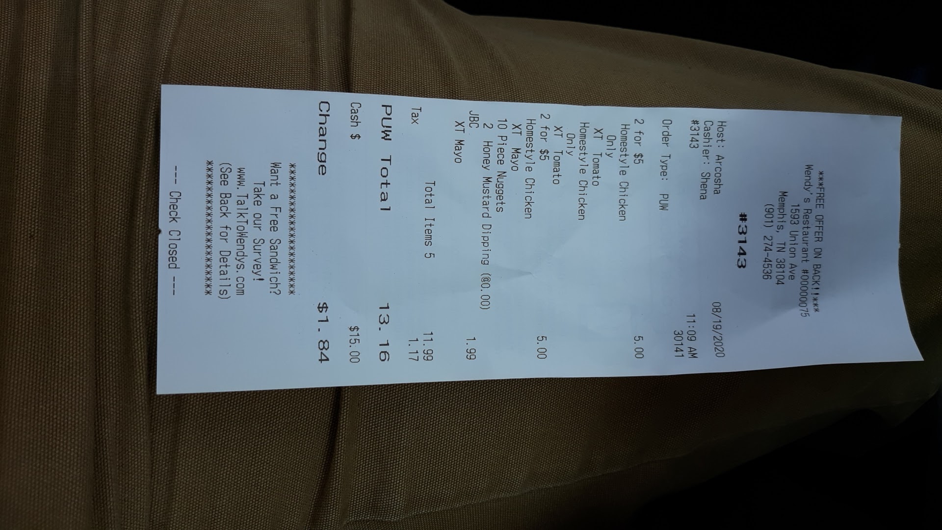 Mya never gave me a receipt. I wouldn't know her name if I hadn't glanced at the receipt because she didn't have a name tag.