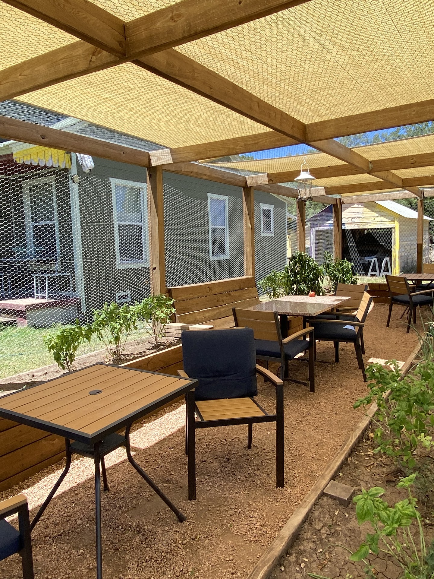 The shaded out door herb garden and patio is very comfy and cool. This is a dog friendly area. We sat outside, had lunch and enjoyed it very much.
