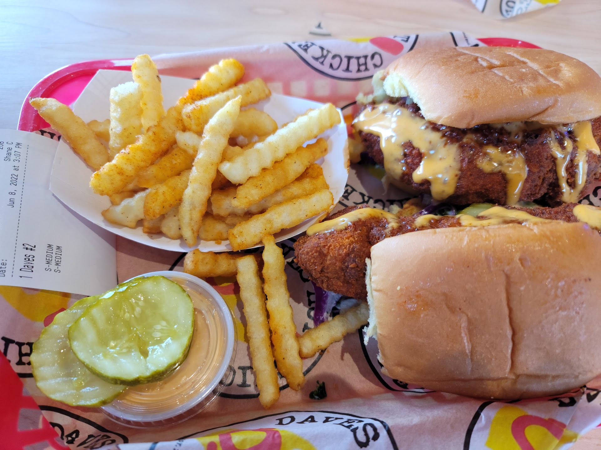 Read moreThis place is definitely appropriately named! I love spicy food, but even just their “hot” flavor really brings the heat. I ordered a number 2 and asked for one sandwich mild and one hot. The one labeled mild seemed to taste almost as spicy as the hot sandwich, so if you’re not into burning lips the no spice option would be the way to go! I’m giving 3 stars because the restaurant still seems to need to workout some quirks. There was a long wait and when I got my order I was told they were out of Mac n cheese. They offered me cheese fries as replacement, but unfortunately there was hardly any cheese on them to be credited as such. The flavor of the sandwich was excellent and the Dave’s sauce was yummy as well. Overall I didn’t hate it but I didn’t love it either, mainly as it seems to be a bit expensive for what you get. My one meal for my husband and I to share, side of Mac-n-cheese I never got, and a tip to be kind was over $20 with no drink. I look forward to giving this a second try when I have time...