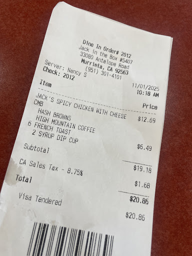 Read moreLATE-NITE BITES on-the-go! Jack in the Box is iconic for a reason, it's got all-day breakfast and an easy-to-follow menu for the weary traveler. I've stopped at this location a couple times and it's always a good experience. I got the Sourdough Supreme meal w/ a lemonade and French fries. If you don't want hashbrowns with your combo, I recommend substituting like I did!
