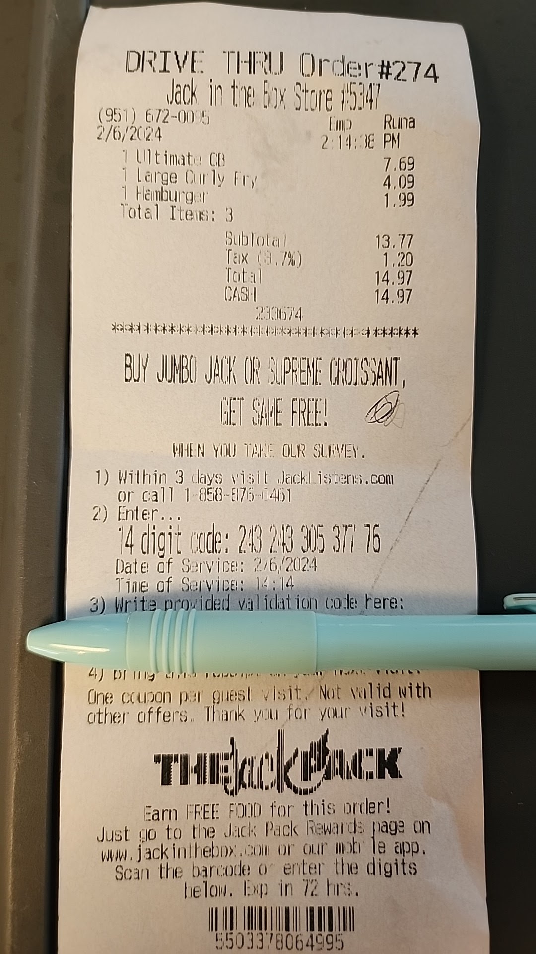 I've always gone to this jack because it's close but it's gotten worse & worse overtime. I'd say about 3/10 times the food is cold or barely warm even though they take so long even w/ minimal cars. I tried the buttery jack 2x this year because I crave how it used to be but it's never the same. The bun is hard & dense; the top one is usaully inedible, the burger sucks usaully overcooked or just dry & it's not even buttery lol. Whatever, I usaully just order tacos for pickup inside, as an EMT with minimal time, but there's been 3 recent occasions where I place it for pickup inside, NOT drive-thru & the doors are locked & they completely ignore you even if you knock loud when they're close to the register. It's not till you stand out there for a long time, knock 3x+ & your orders been done so they finally come bring it to you when they finish the whole drive-thru line. Isn't the point of the app/pickup to have your order done when you get there or before others that get there at the same time as you...efficiency of any sort. I came here in my car, ordered 4 monster tacos & a large fry & jalapeño poppers. Of course doors are locked before 9 so I go in the drive-thru & once I get to the window, 15 minutes after it said my order was done because there were 3-4 cars, I asked the young girl working why they keep closing the inside early & I kid you not she literally just looked me dead in the eye & laughed, then handed me my order???? I was so confused because It was just a super weird reaction I wasn't even sure she heard me right so I asked again and she didn't say anything at all and just was making weird eye contact again so I just asked for my sauce so I can go and she dropped literally all of it outside the bag I was holding out, probably because she was being weird & staring, maybe just seemed high in general but at least she got me more and made it in the 2nd time? I just left bc wtf. So glad there's a new one on Mcall that's only half as bad with all the homeless that live outside it, I still rather go...