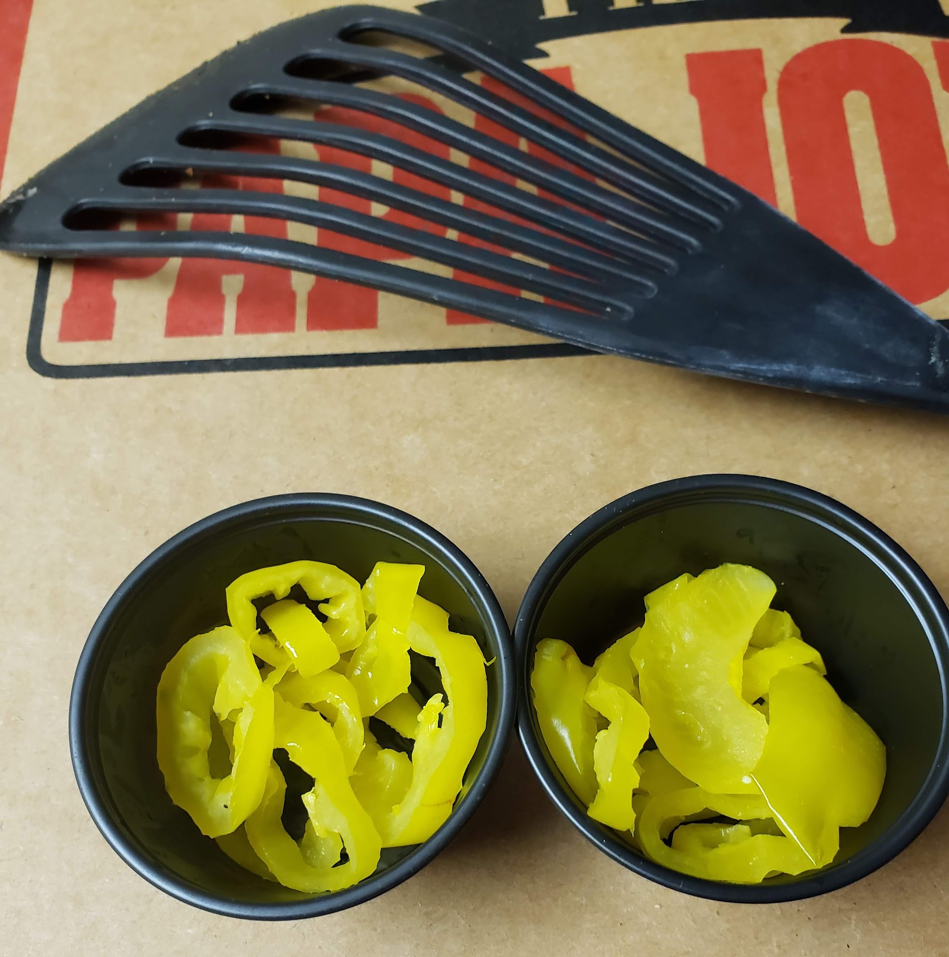 I should have opened and inspected each box before signing the check because when I took the food into the kitchen, there were NO sides of banana peppers in any of the boxes. In fact, two sides of peppers WOULD NEVER FIT in those boxes along with the food.