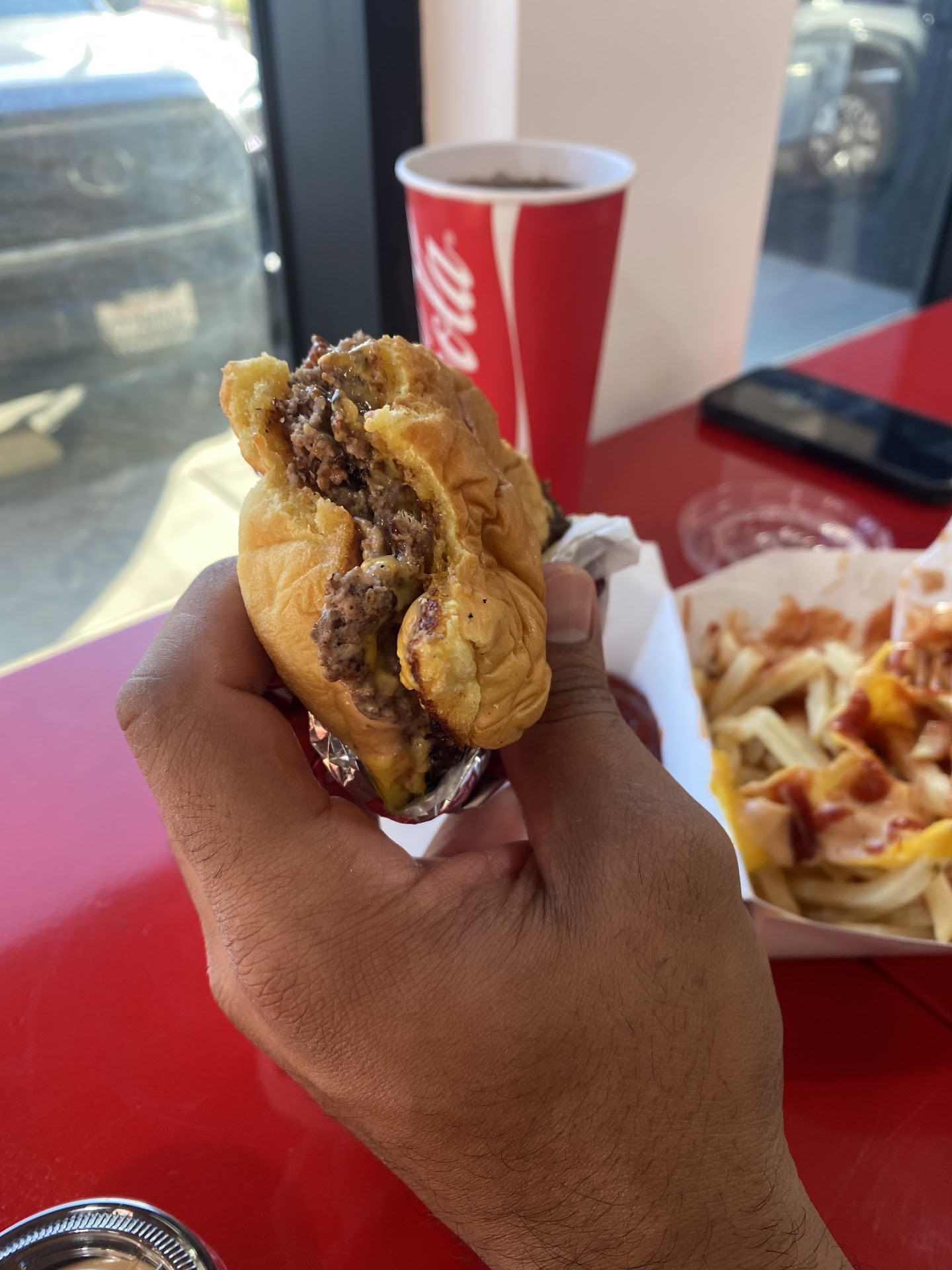 I would say think In n Out but with a better bun, better meat, better everything lol. They seemed to butter their buns and the grill them which adds a light and fluffy but crisp outer texture to them. The meat is seasoned well and the sauce is on the sweeter side. I added the chili peppers to the burger and that heat leveled out the sauce magnificently. I used to have to drive to LA for a great smash burger like Eazy Street, but this is right down the way from me and I can honestly say this is the best smash burger I have had in the I.E. Definitely will be coming back here on the regular!